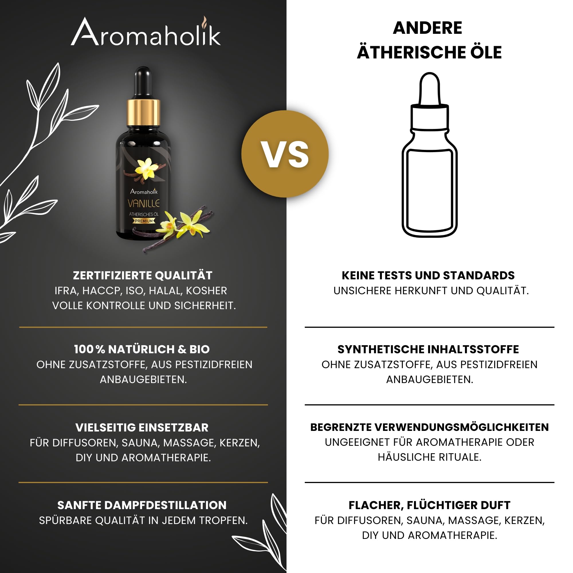 Premium reines natürliches Vanilleöl – 100 % pures ätherisches Öl, BIO, organisch – zur Herstellung ätherischer Öle, Kerzen, Seifen, DIY – Vanilla Essence 1L, Aromaholik