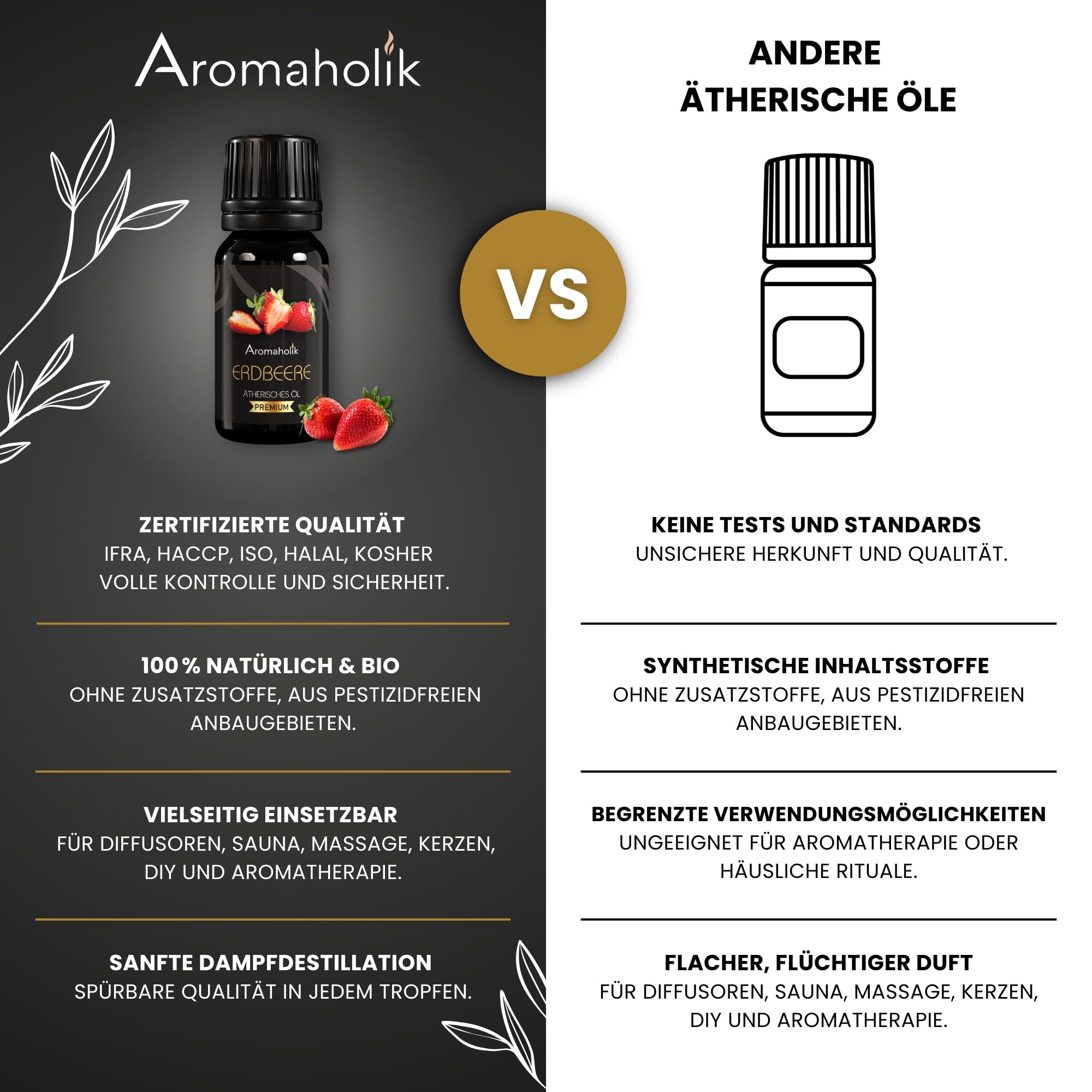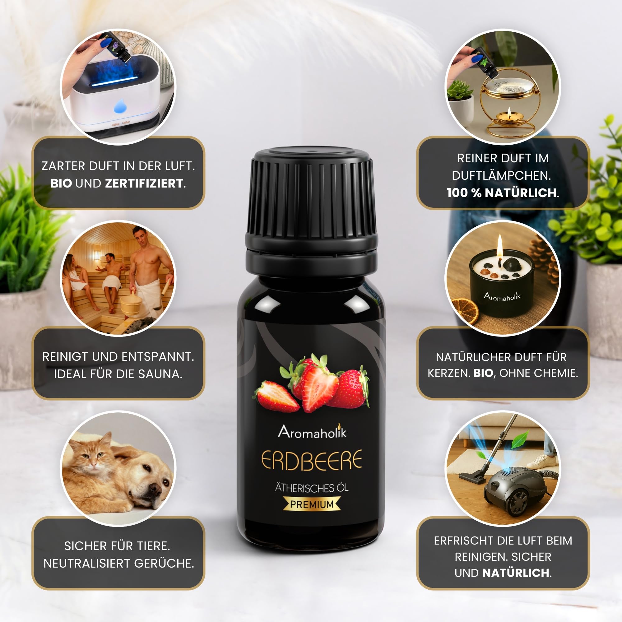 Aromaholik Erdbeeröl BIO 100% naturrein – Ätherische Öle für Diffuser & Aroma Diffuser – Zertifiziertes ätherisches Öl aus Indien – Strawberry Essential Oils 10ml für Sauna & Massage