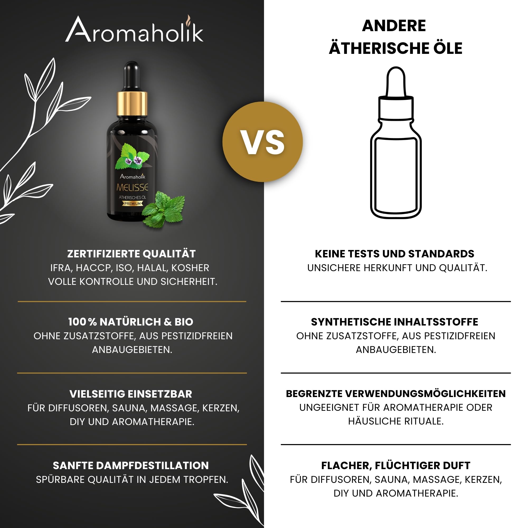 Mindestanzahl für die Bestellung von "Premium reines natürliches Melissenöl – 100 % pures ätherisches Öl, BIO, organisch – zur Herstellung ätherischer Öle, Kerzen, Seifen, DIY – Lemon Balm Essence 1L, Aromaholik" ist 1.