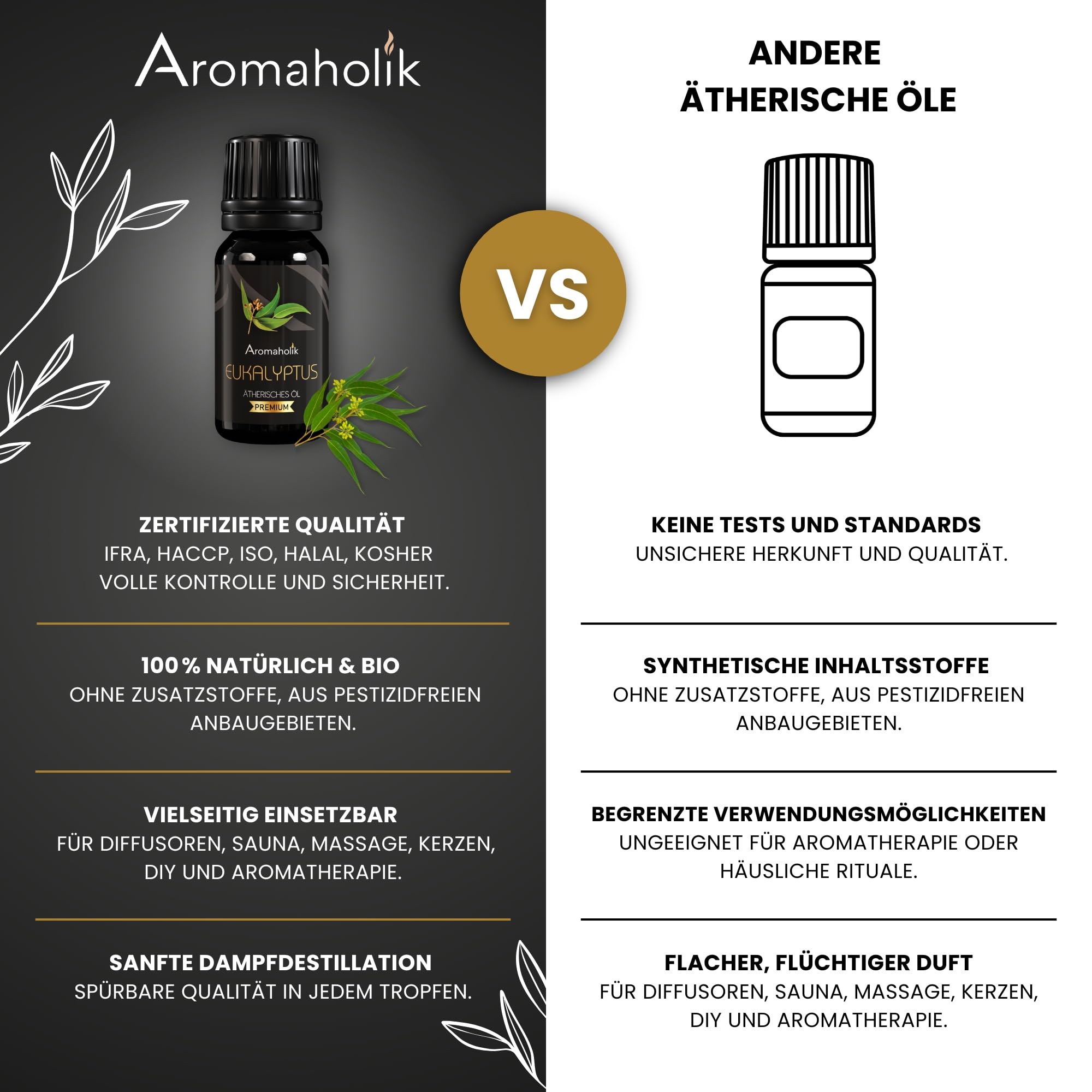 Aromaholik Eukalyptusöl BIO 100% naturrein – Ätherische Öle für Diffuser & Aroma Diffuser – Zertifiziertes ätherisches Öl aus Indien – Eucalyptus Essential Oils 10ml für Sauna & Massage