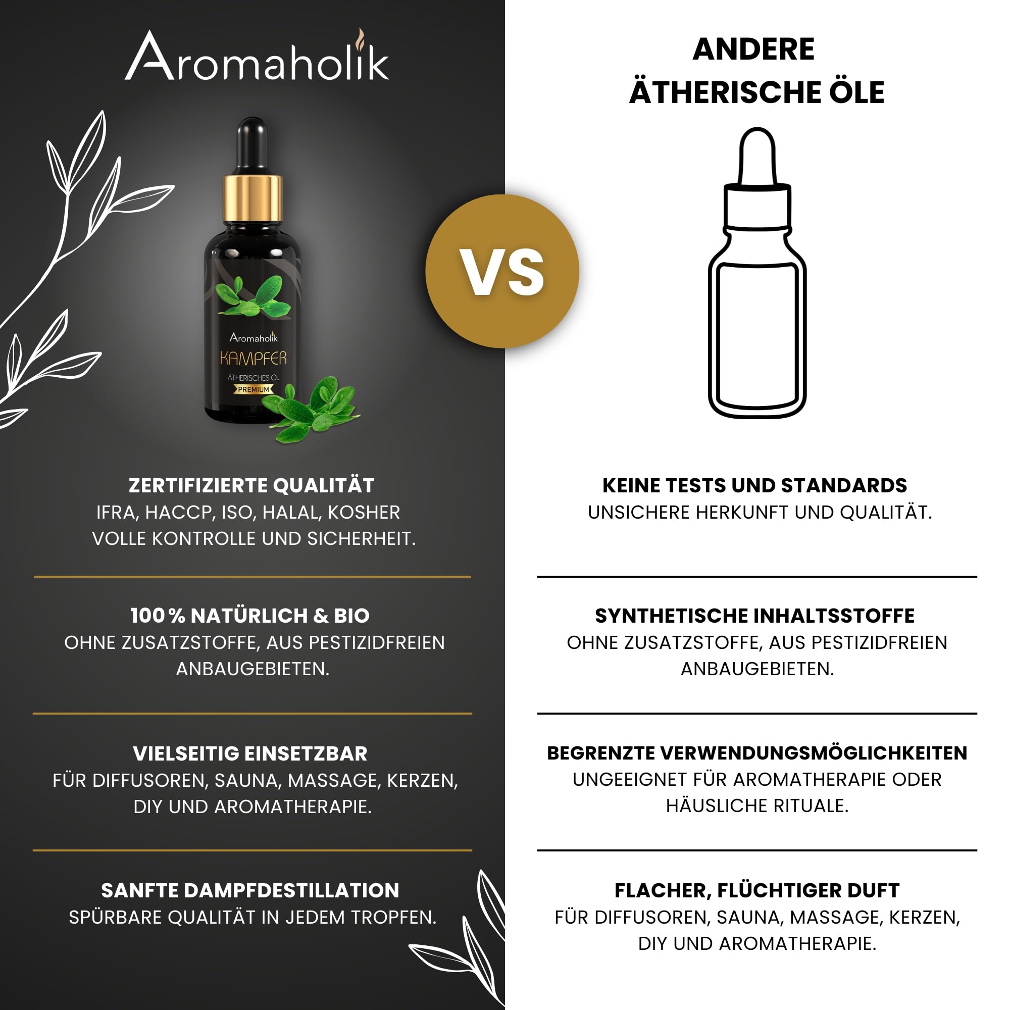 Aromaholik Kampferöl BIO 100% naturrein – Ätherische Öle für Diffuser & Aroma Diffuser – Zertifiziertes ätherisches Öl aus Indien – Camphor Essential Oils 30ml für Sauna & Massage