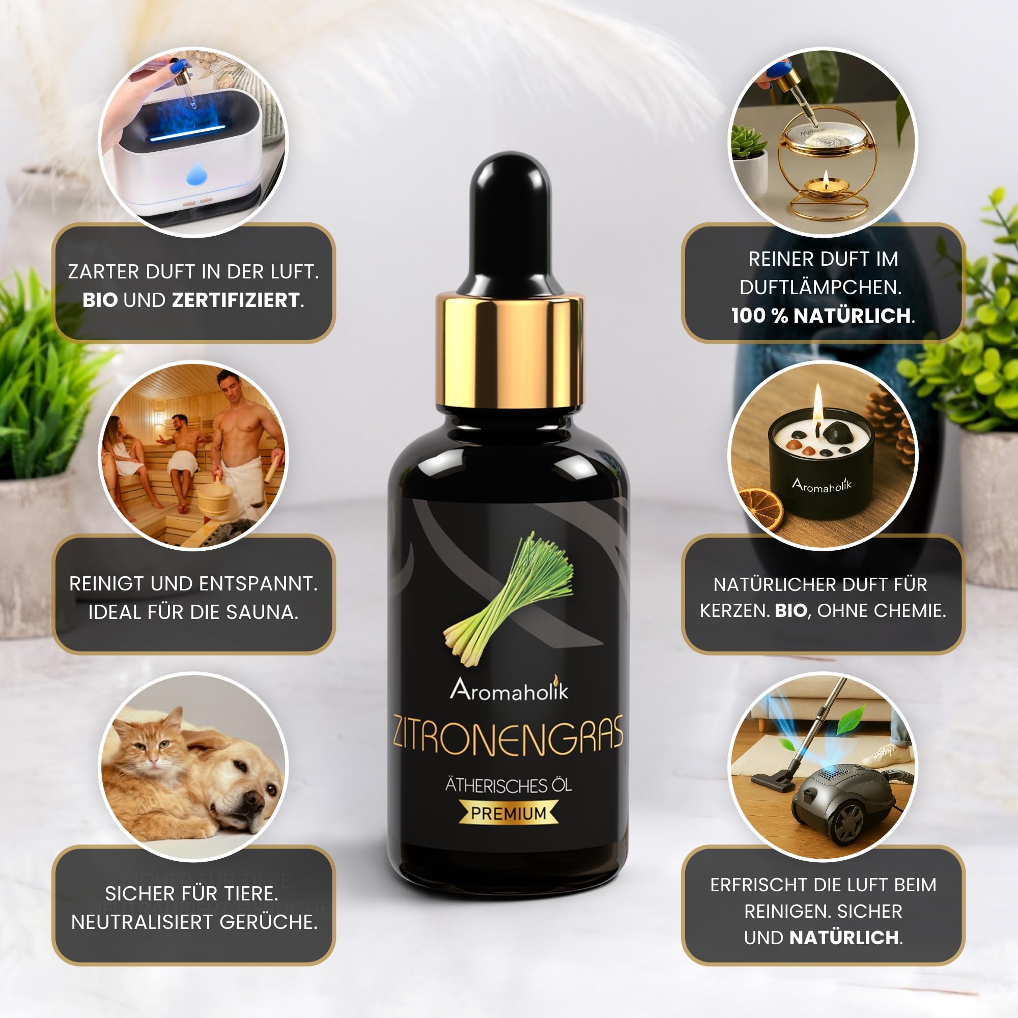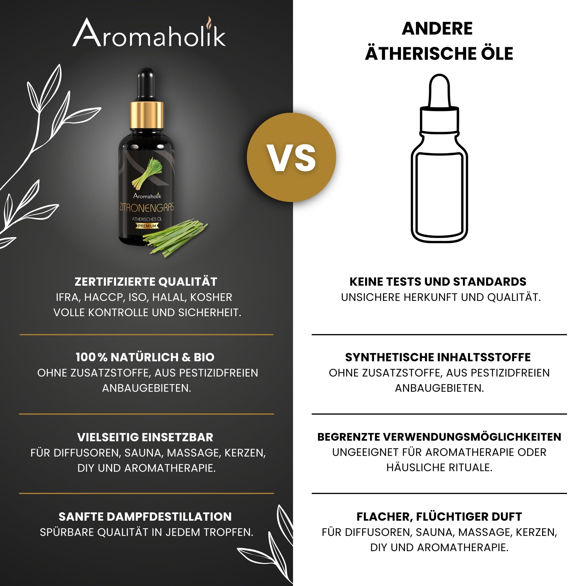 Premium reines natürliches Zitronengrasöl, 100 % pures ätherisches Öl, BIO, organisch - zur Herstellung ätherischer Öle, Kerzen, Seifen, DIY – Lemongrass Essence 1L, Aromaholik