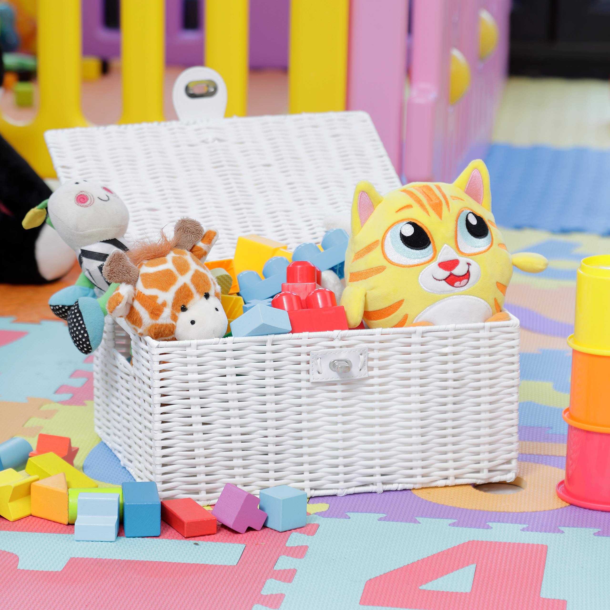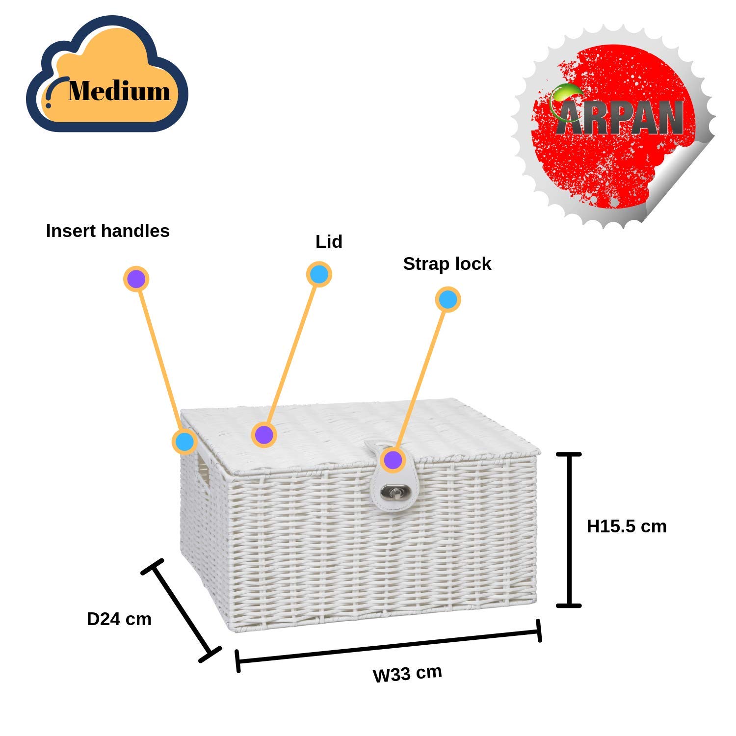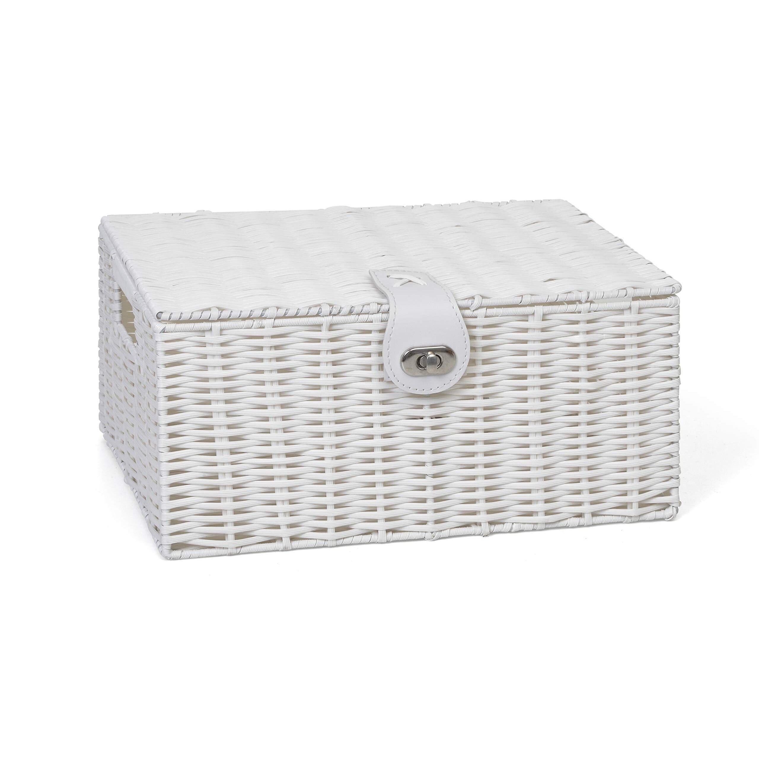 ARPAN Aufbewahrungskorb, mittelgross, Kunstharz, gewebt, mit Deckel und Schloss, Weiss
