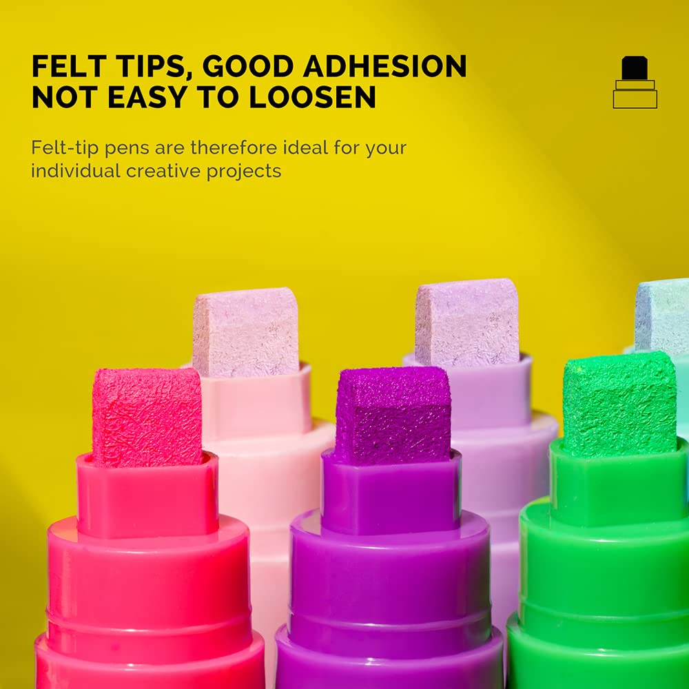 Arrtx Acrylstifte Marker 12 Stück Keil-Spitze 10mm für breite Markierungen - wasserfest, schnell-trocknend, wischfest für Karton, Kunststoff, Holz, Metall, Glas