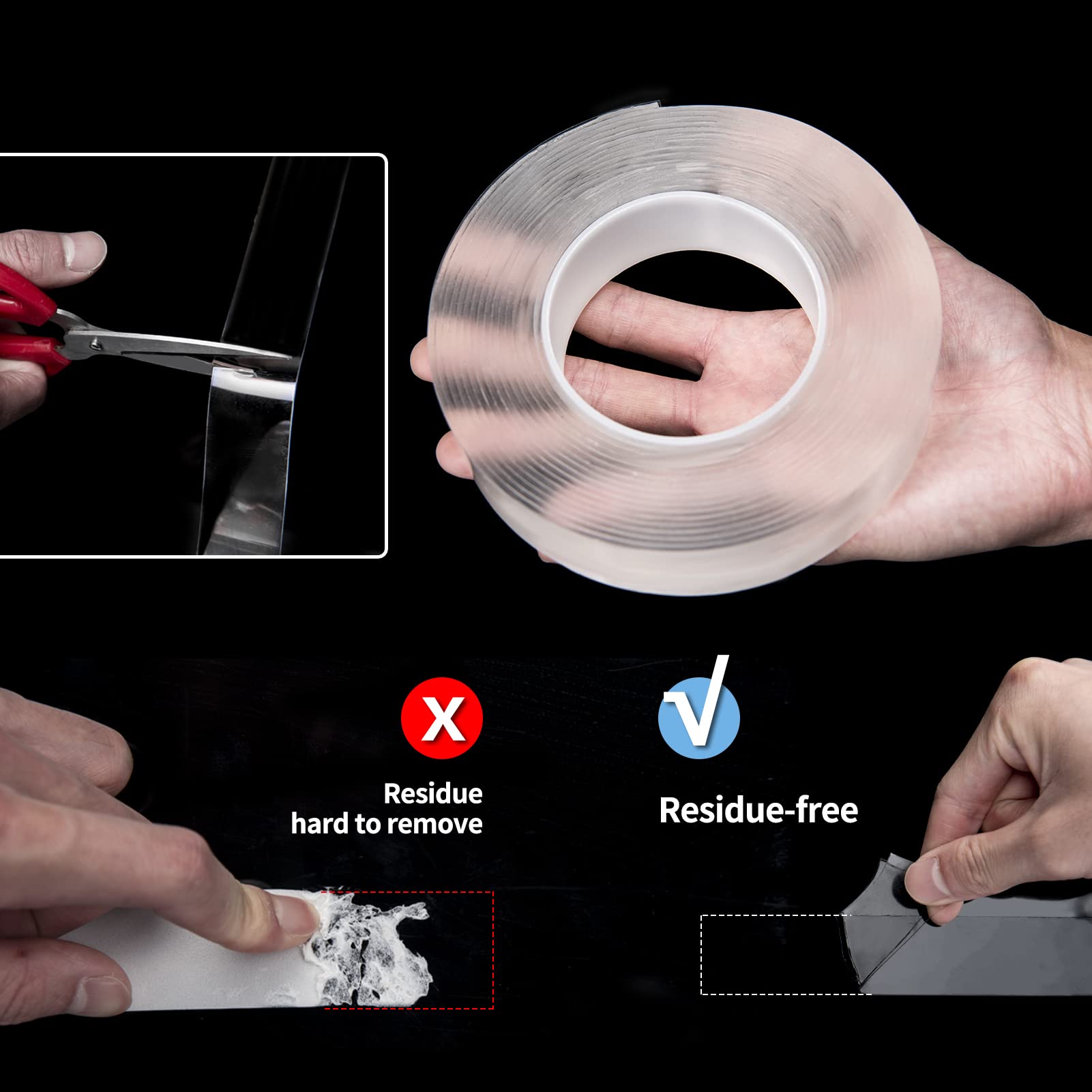 Es bietet eine 3-mal stärkere Haftung als herkömmliche Klebebänder und ist ideal für vielseitige Anwendungen zu Hause, im Büro oder im Auto. Dank der Nano-Mikromolekular-Technologie ist das Band abnehmbar, rückstandsfrei und nach dem Waschen wiederverwendbar. Es beschädigt keine Oberflächen und hinterlässt keine Spuren. Perfekt für eine unsichtbare, starke Befestigung ohne Schrauben oder Nägel.