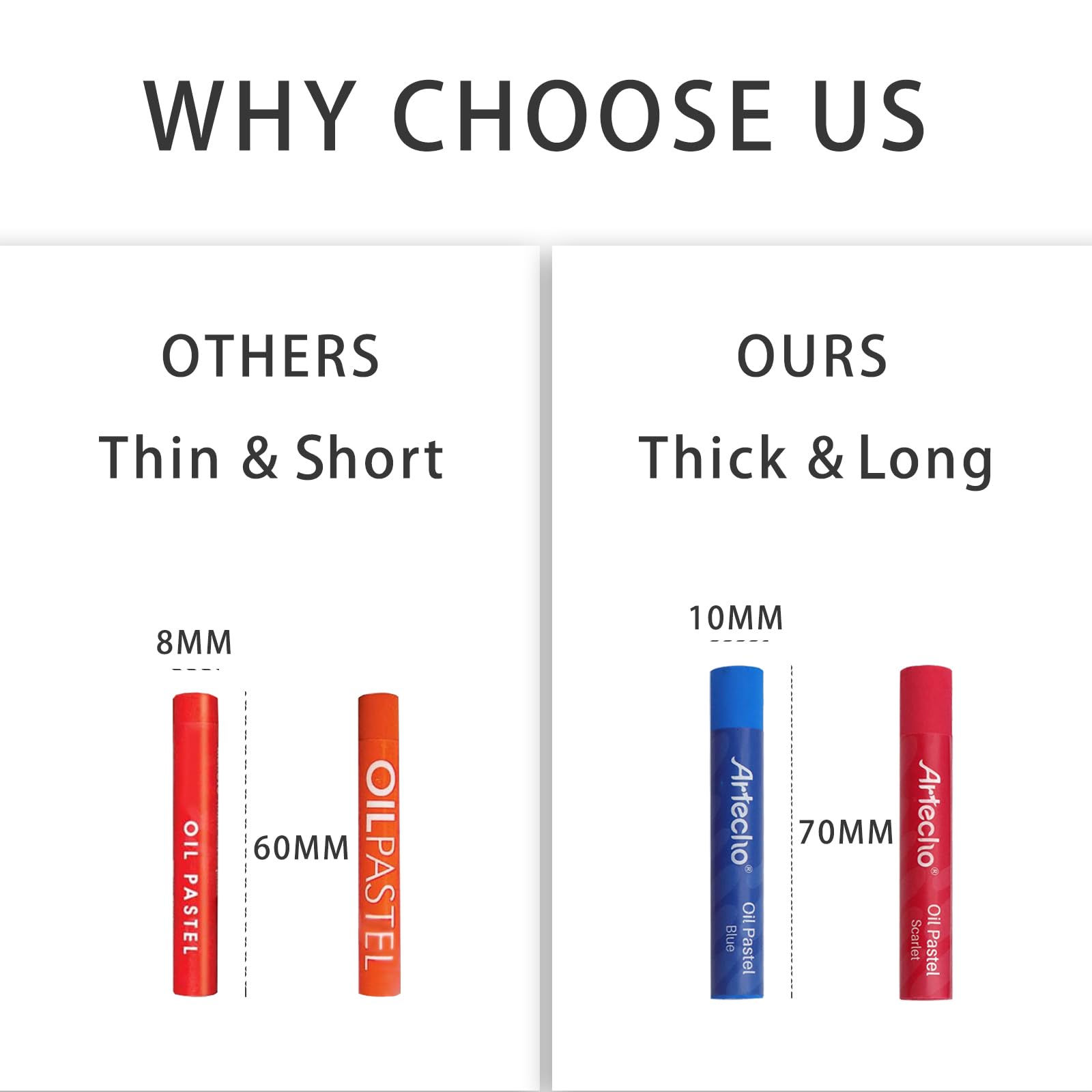 Artecho Ölpastellkreide 72 Strong Color Set, lichtechte Farben, Sanfte Berührung, Einfaches Mischen und Schattieren, Ideal für Künstler, Hobbymaler, Schule.