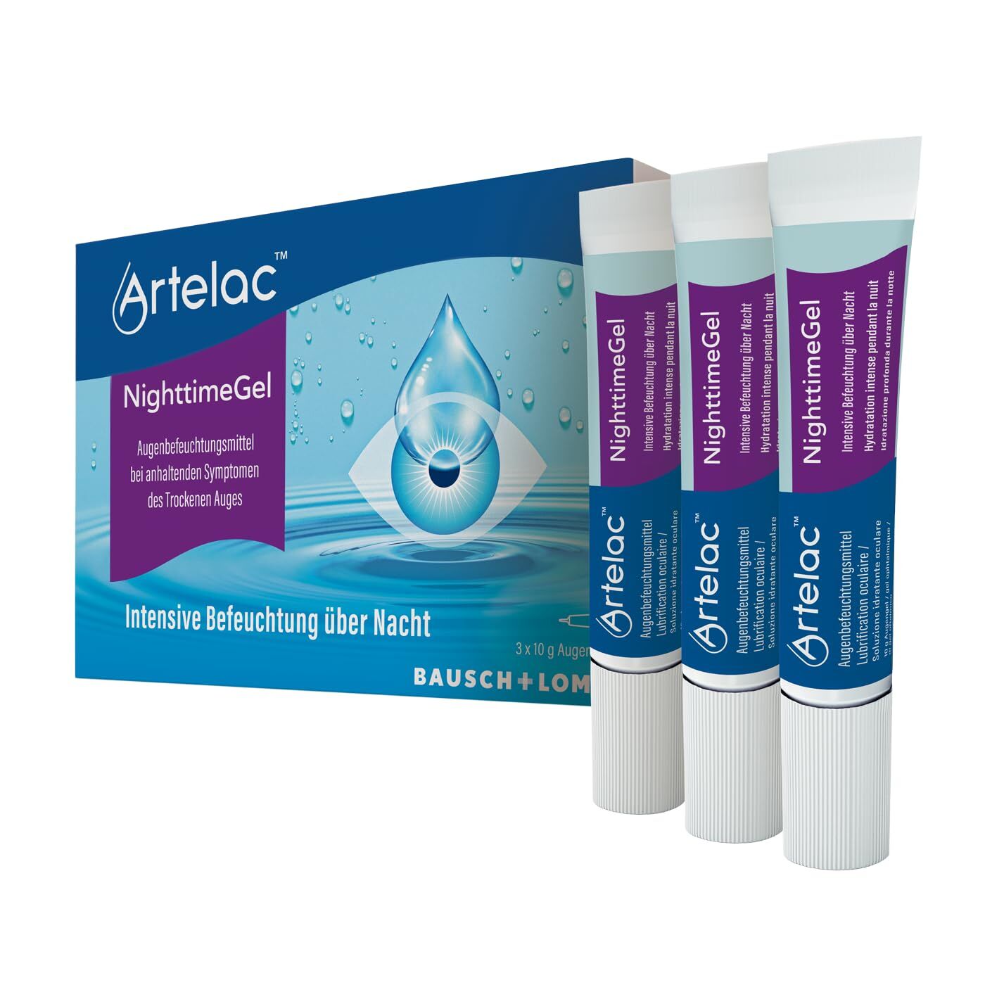 Artelac NighttimeGel - Augengel bei trockenen Augen - Der Schutz zur Nacht - bei allen Formen des trockenen Auges - intensive Augenbefeuchtung - Ergänzung zu Augentropfen (3 x 10 g)
