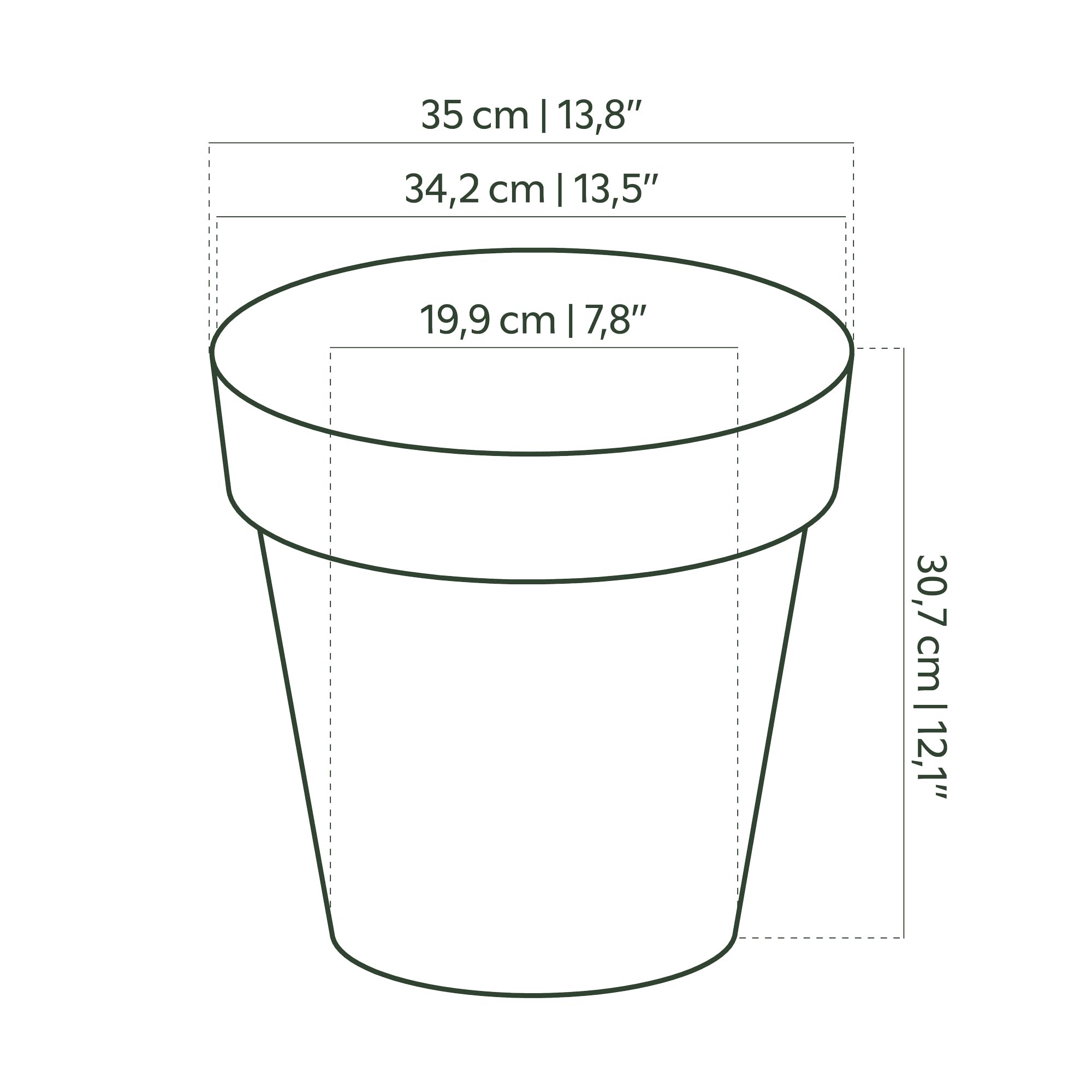 Runder Topf in klassischer Form. Aufgrund der Vielfalt an Grössen und Farben ist dieser Topf der vielseitigste der Kollektion. Perfekt für drinnen und draussen.