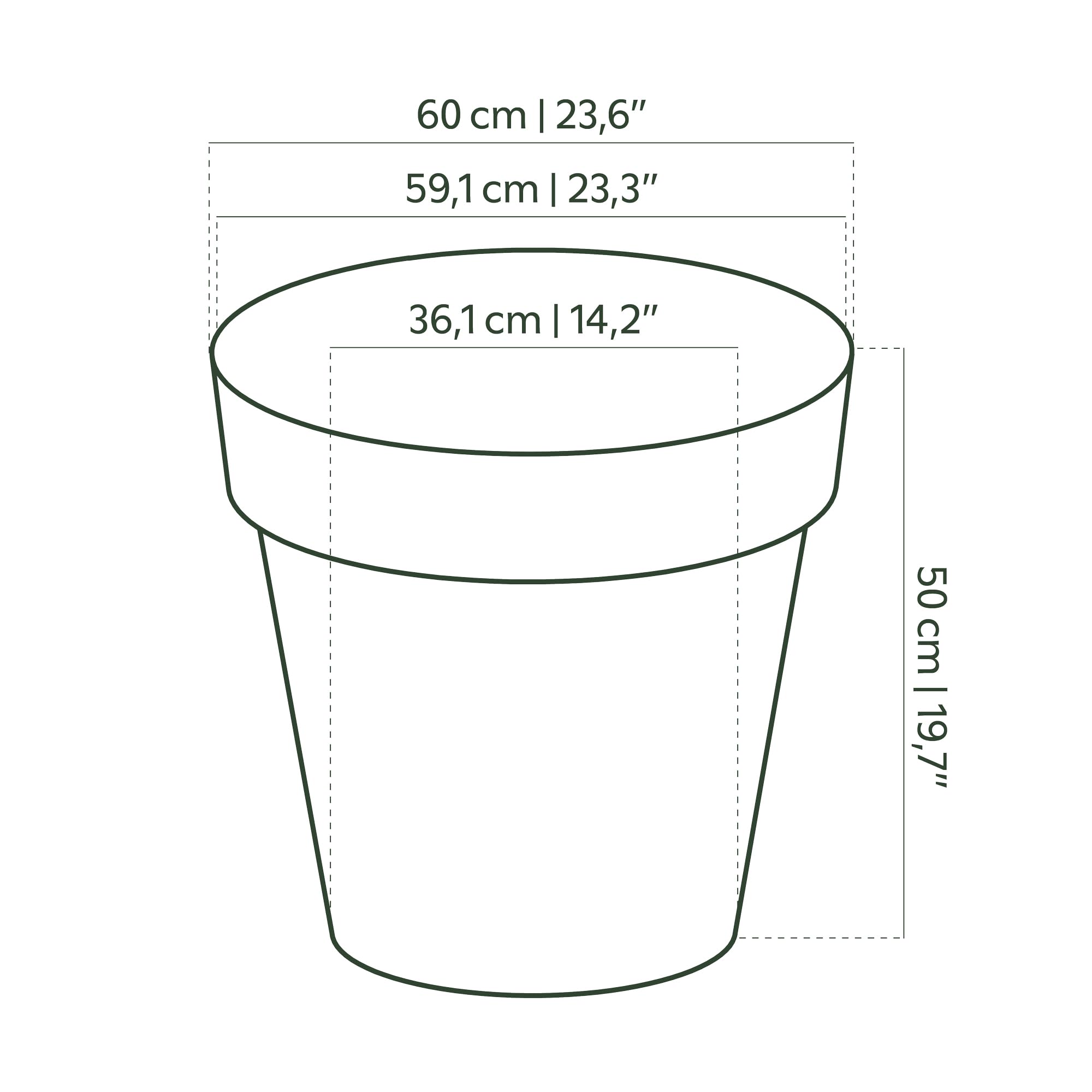 Runder Topf in klassischer Form. Aufgrund der Vielfalt an Grössen und Farben ist dieser Topf der vielseitigste der Kollektion. Perfekt für drinnen und draussen.