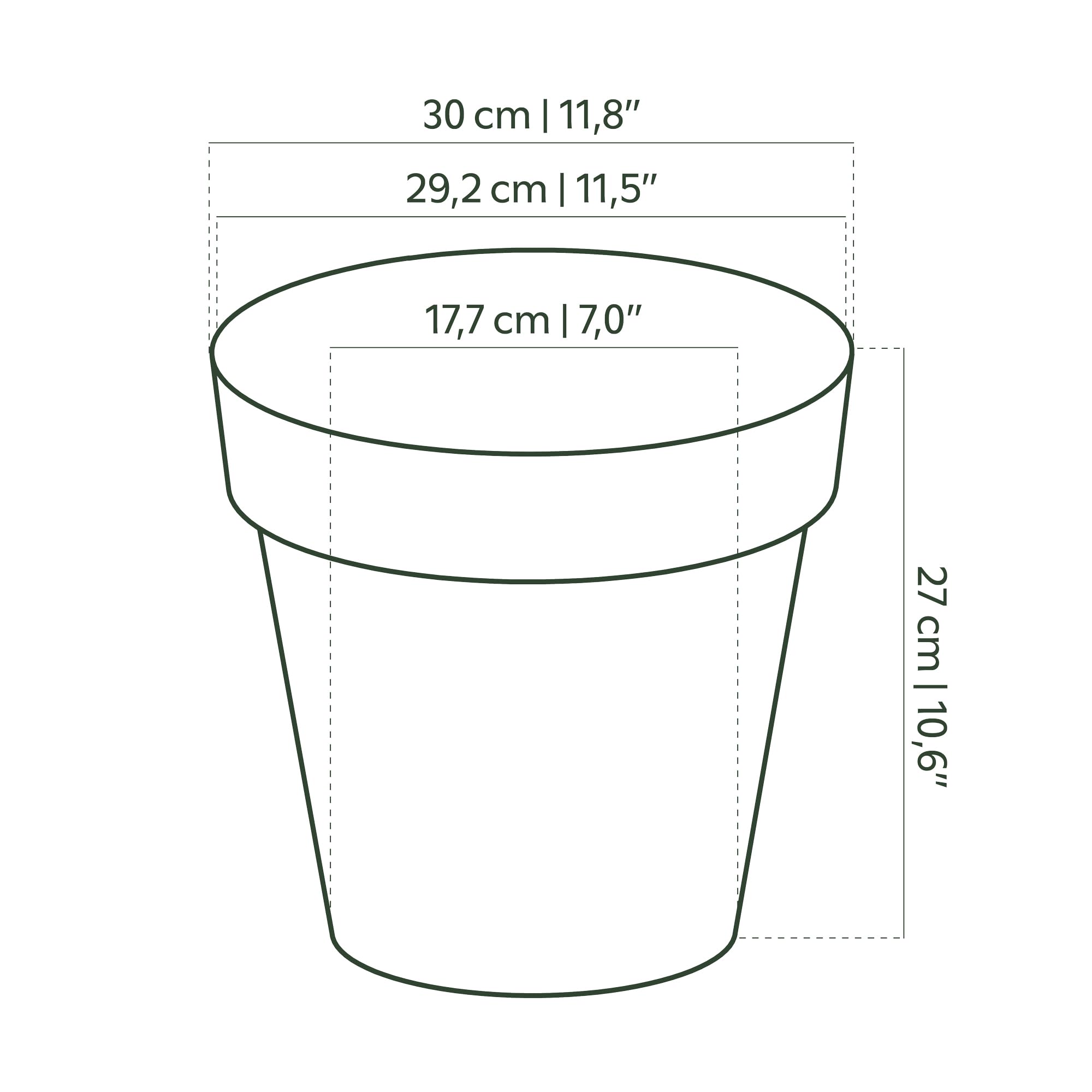 Runder Topf in klassischer Form. Aufgrund der Vielfalt an Grössen und Farben ist dieser Topf der vielseitigste der Kollektion. Perfekt für drinnen und draussen.