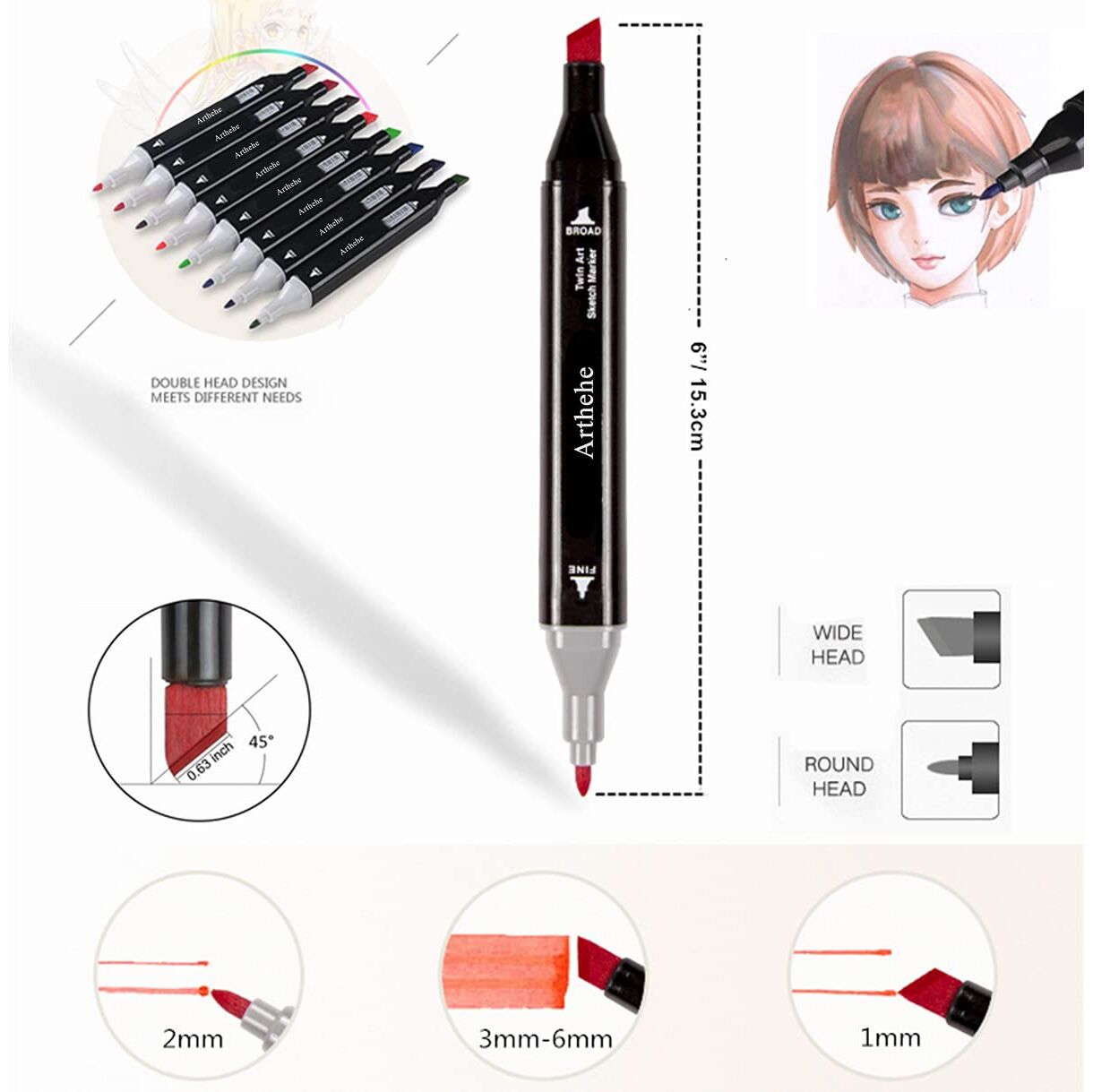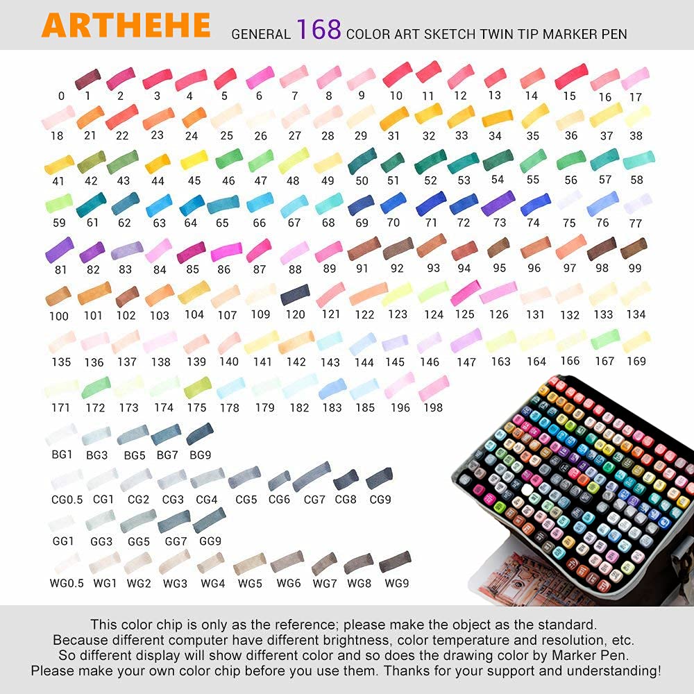 ARTHEHE 168 Farben Graffiti Stifte + 2 Farbmischstifte Nr. 0, Doppelspitzen-Marker-Stifte für Manga-Designschule (170 Stück)