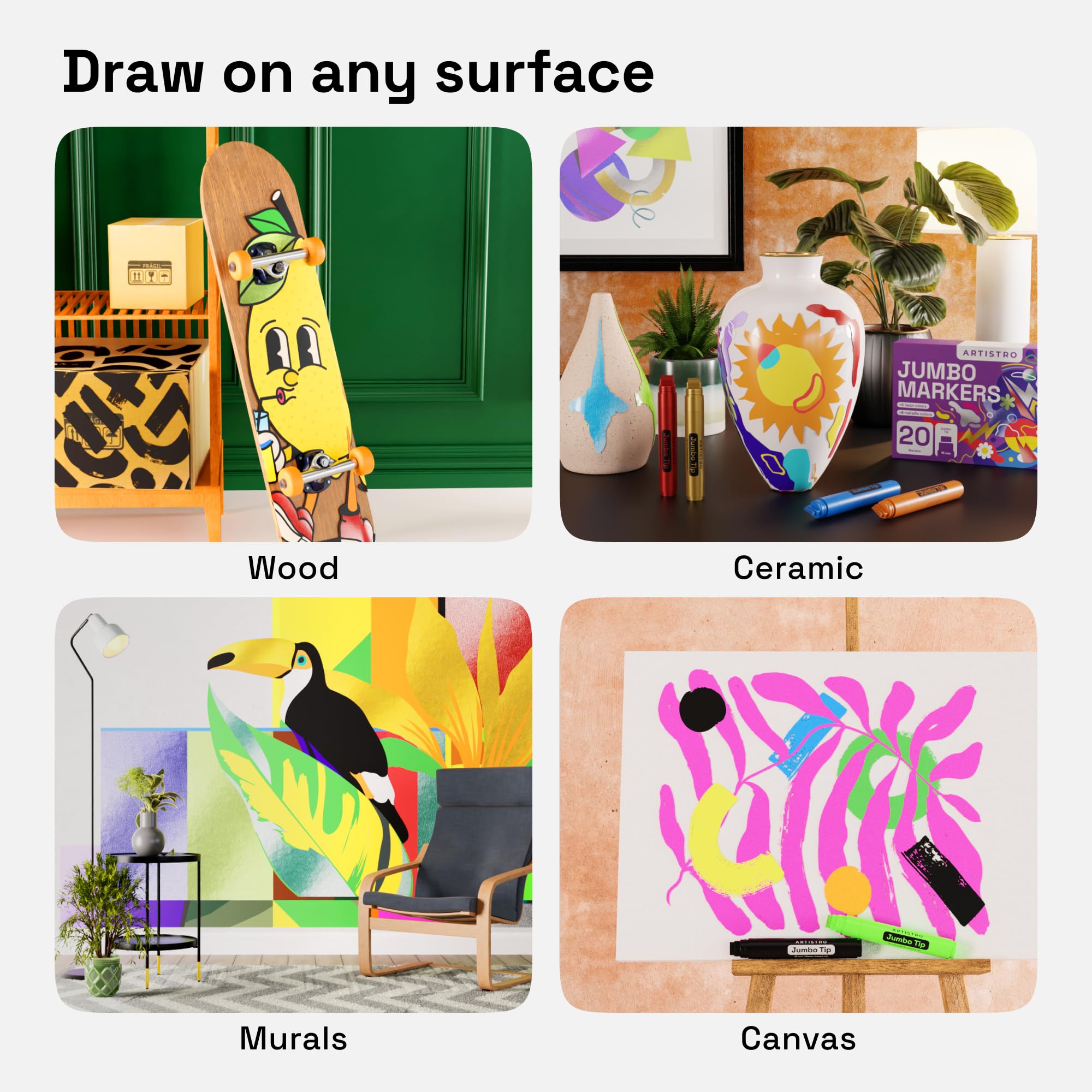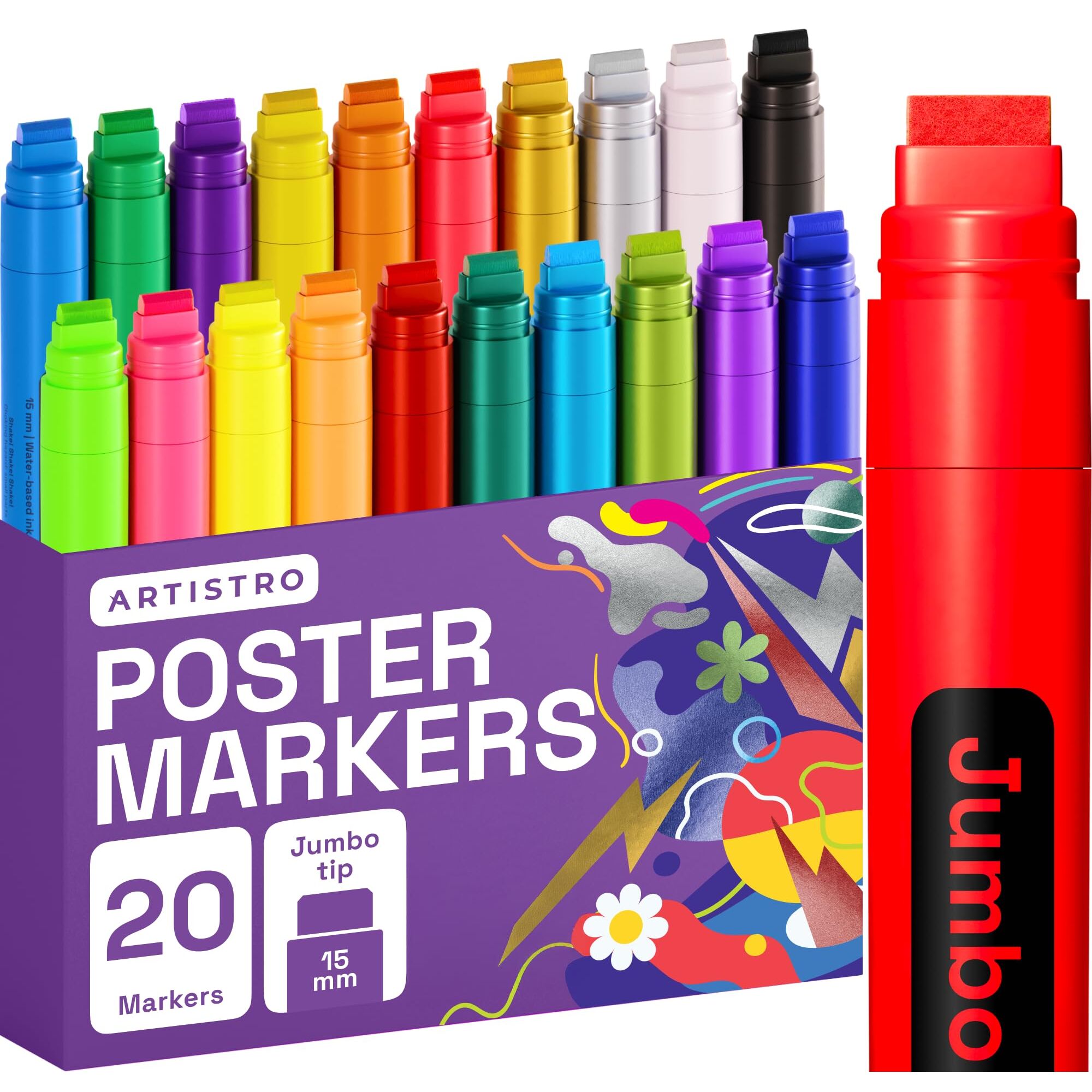 Artistro 20 Mehrfarbiger Jumbo Marker, Zeichenset, Acryl-Marker mit 15-mm-Jumbo-Filzspitze für Stein, Holz, Leinwand, Keramik, Glas, Wandgemälde, Poster, Kunstzeitschriften, Kalligraphie