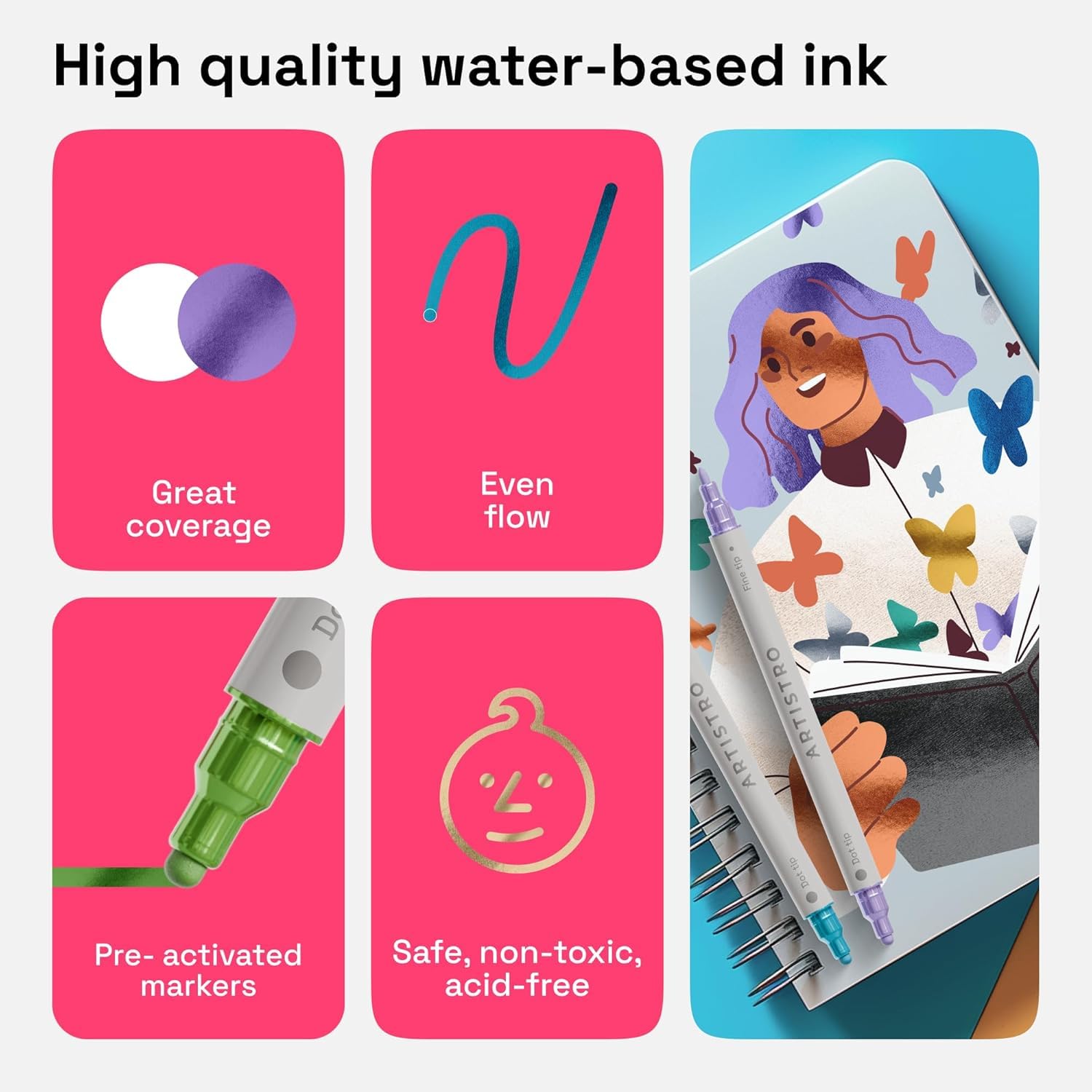 - SICHER, UNGIFTIG UND IDEAL FÜR EINSTEIGER: Dieses Set entspricht den ASTM D-4236 Sicherheitsstandards. Es ist geruchlos und sicher für Kinder, Jugendliche und Erwachsene – perfekt für Klassenzimmer, Ateliers, Anfänger, Profis oder gemütliche Bastelabende zu Hause. PRAKTISCHE LAGERUNG FÜR LANGE HALTBARKEIT: Bewahre die Marker waagerecht mit fest verschlossenen Kappen auf, um die Farbqualität und den gleichmässigen Tintenfluss zu erhalten. So bleiben deine Stifte immer einsatzbereit für flüssige, leuchtende Striche.