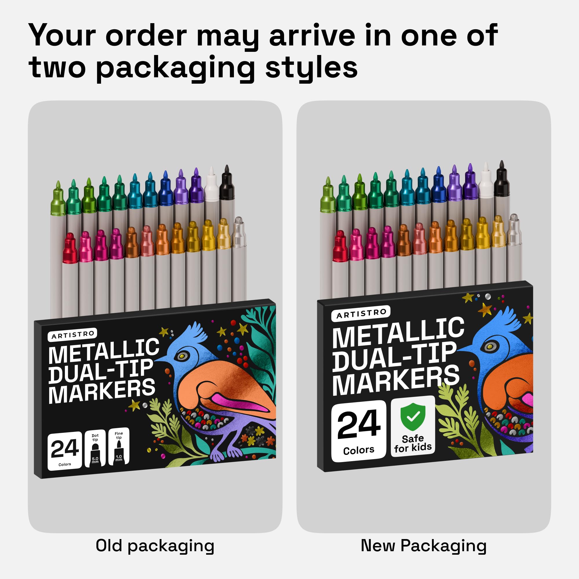 Artistro Acrylstifte Zeichenset für Stein, Holz, Stoff, Glas & Keramik – Wasserfest mit Doppelspitze – Perfekt zum Basteln, Malen & Dekorieren zu Christmas, Künstlerbedarf – 24 Metal Farben