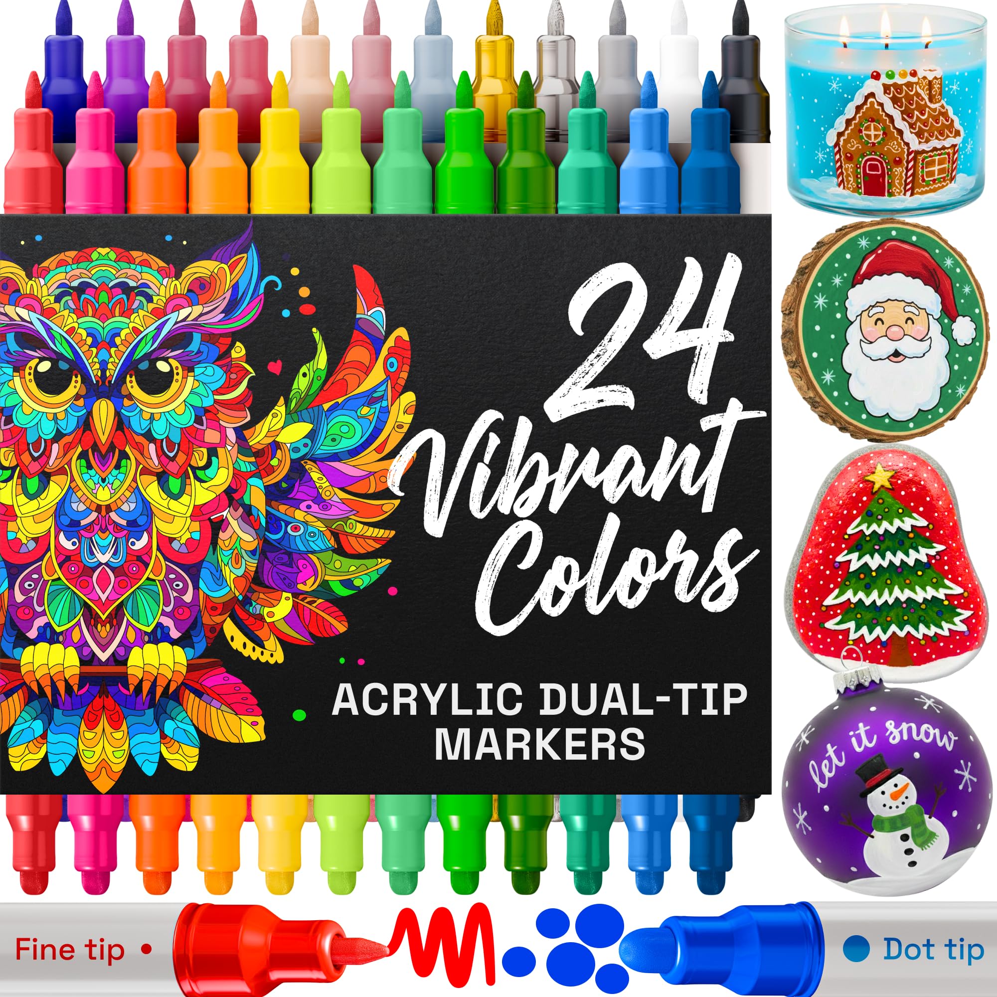 Artistro Acrylstifte Zeichenset für Stein, Holz, Stoff, Glas & Keramik – Wasserfest mit Doppelspitze – Perfekt zum Basteln, Malen & Dekorieren zu Christmas, Künstlerbedarf – 24 Farben
