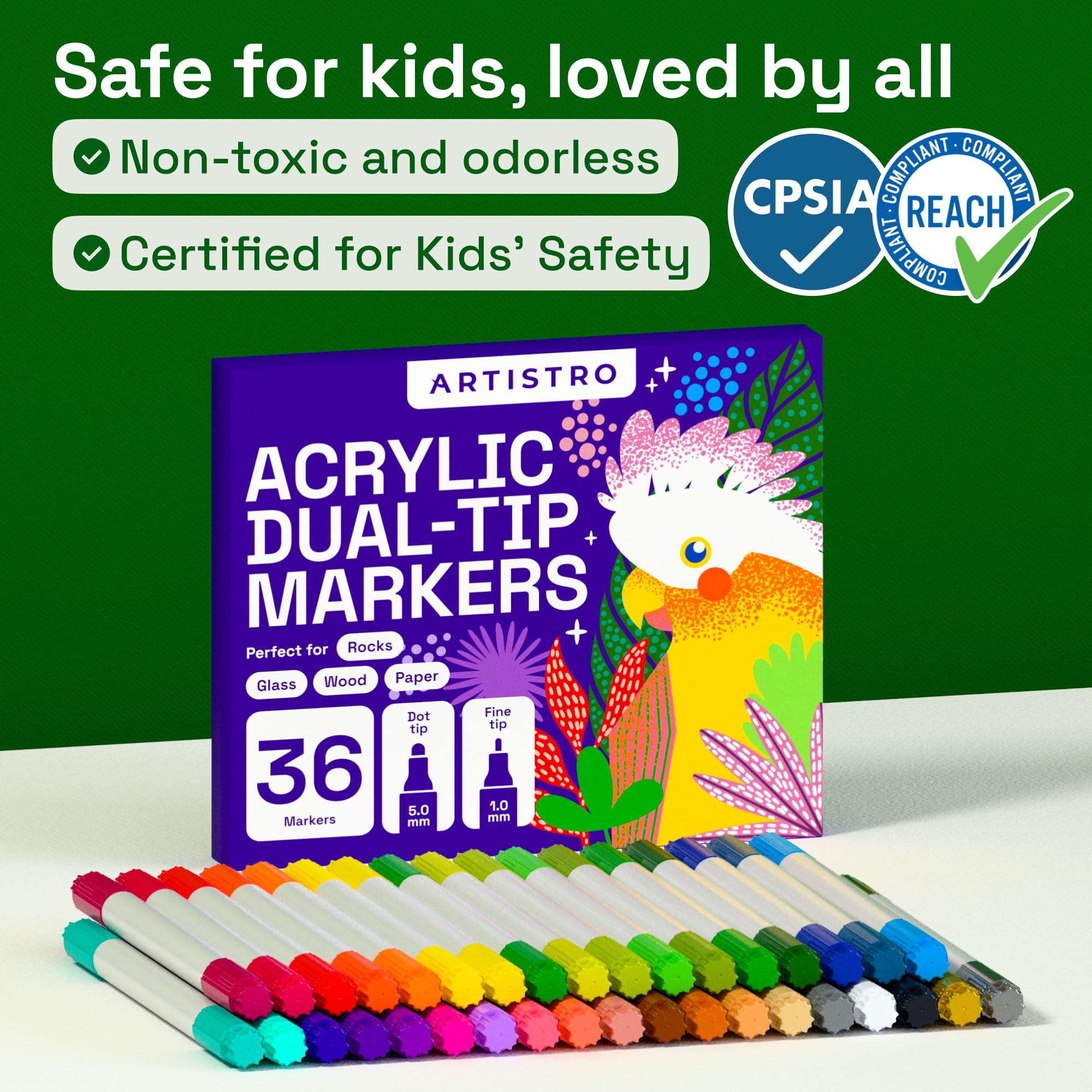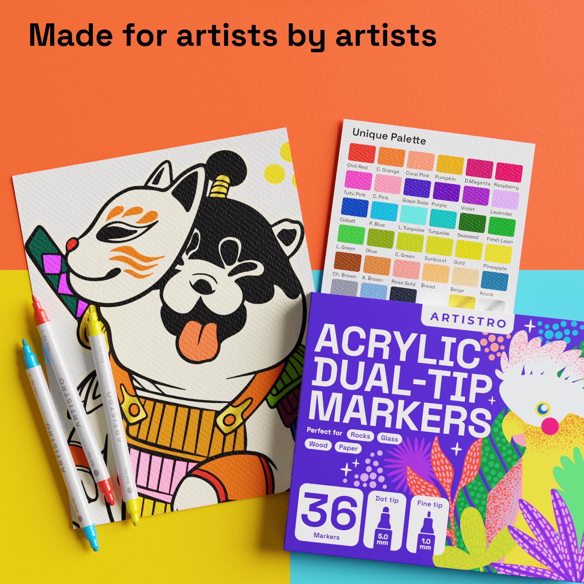 Artistro Acrylstifte Zeichenset für Stein, Holz, Stoff, Glas & Keramik – Wasserfest mit Doppelspitze – Perfekt zum Basteln, Malen & Dekorieren zu Christmas, Künstlerbedarf – 36 Farben