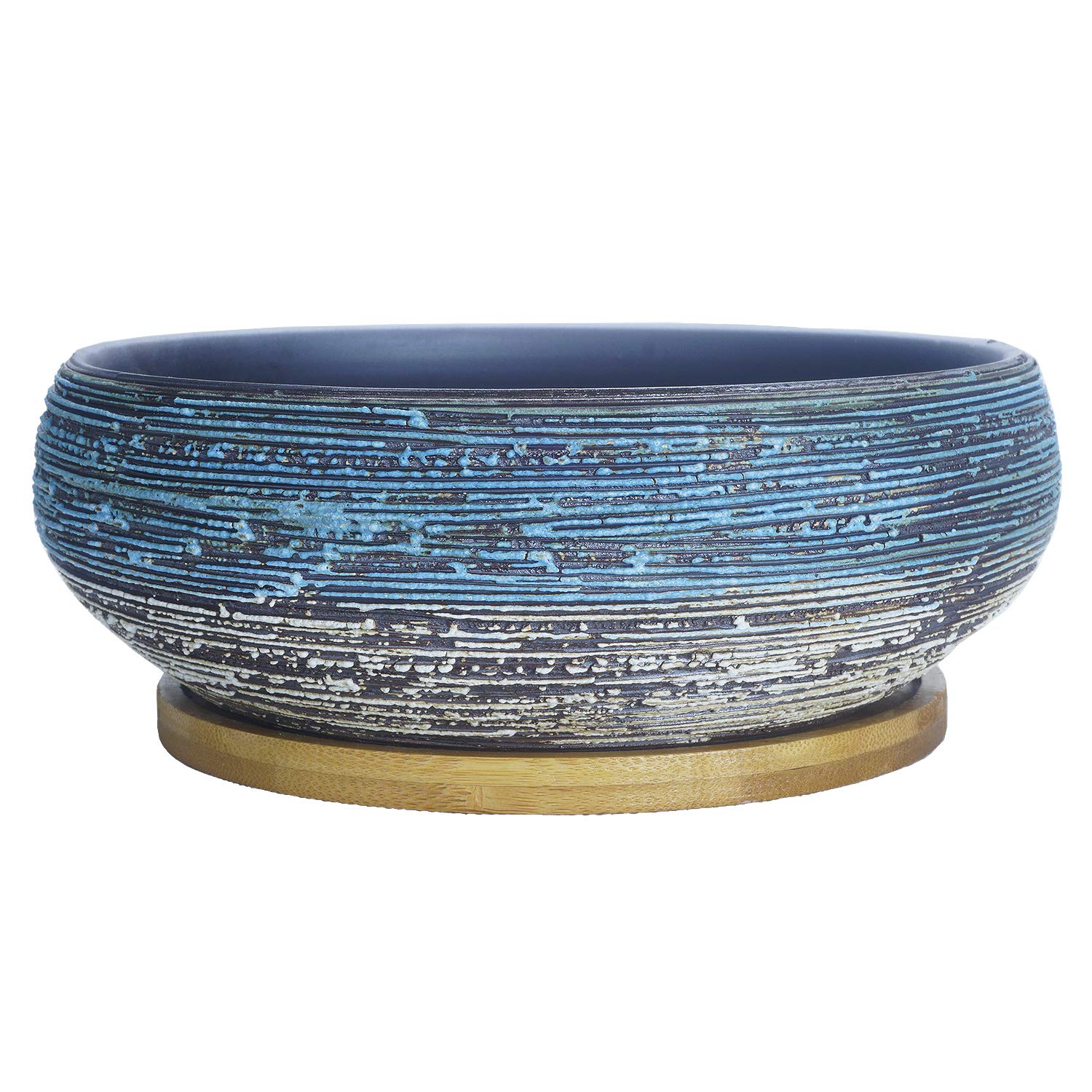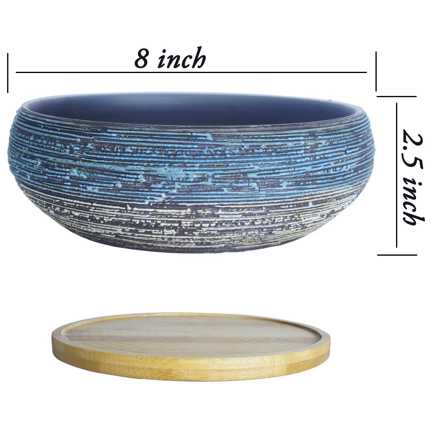 ARTKETTY 8 Zoll grosse runde saftige Pflanzgefässe mit Drainage Bambusschale Keramik glasierte Bonsai Töpfe für Innen- / Aussenpflanzen Garten dekorative Kaktusblumenbehälter Schüssel