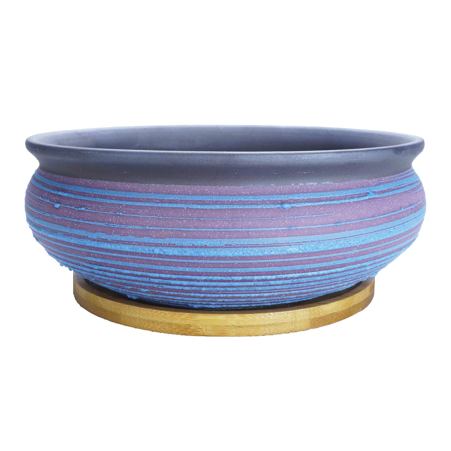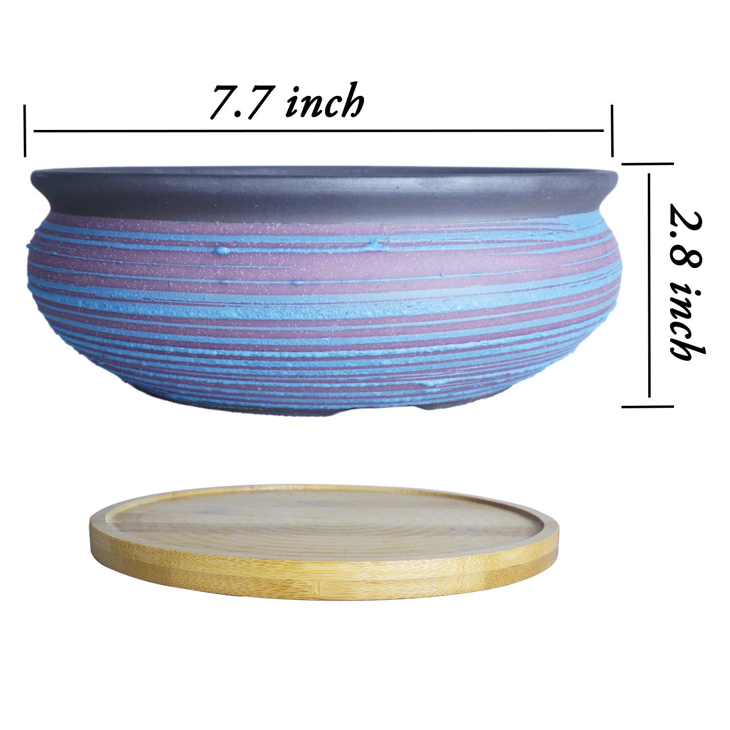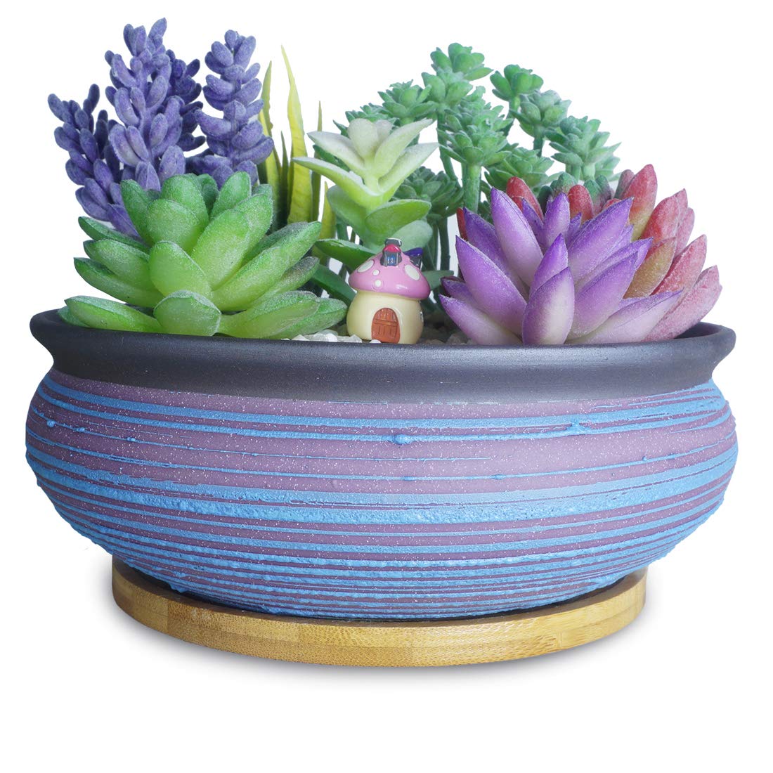 ARTKETTY 7,7 Zoll grosse runde saftige Pflanzgefässe mit Drainage Bambusschale Keramik glasierte Bonsai-Töpfe für Innen- / Aussenpflanzen Garten dekorative Kaktusblumenbehälterschale