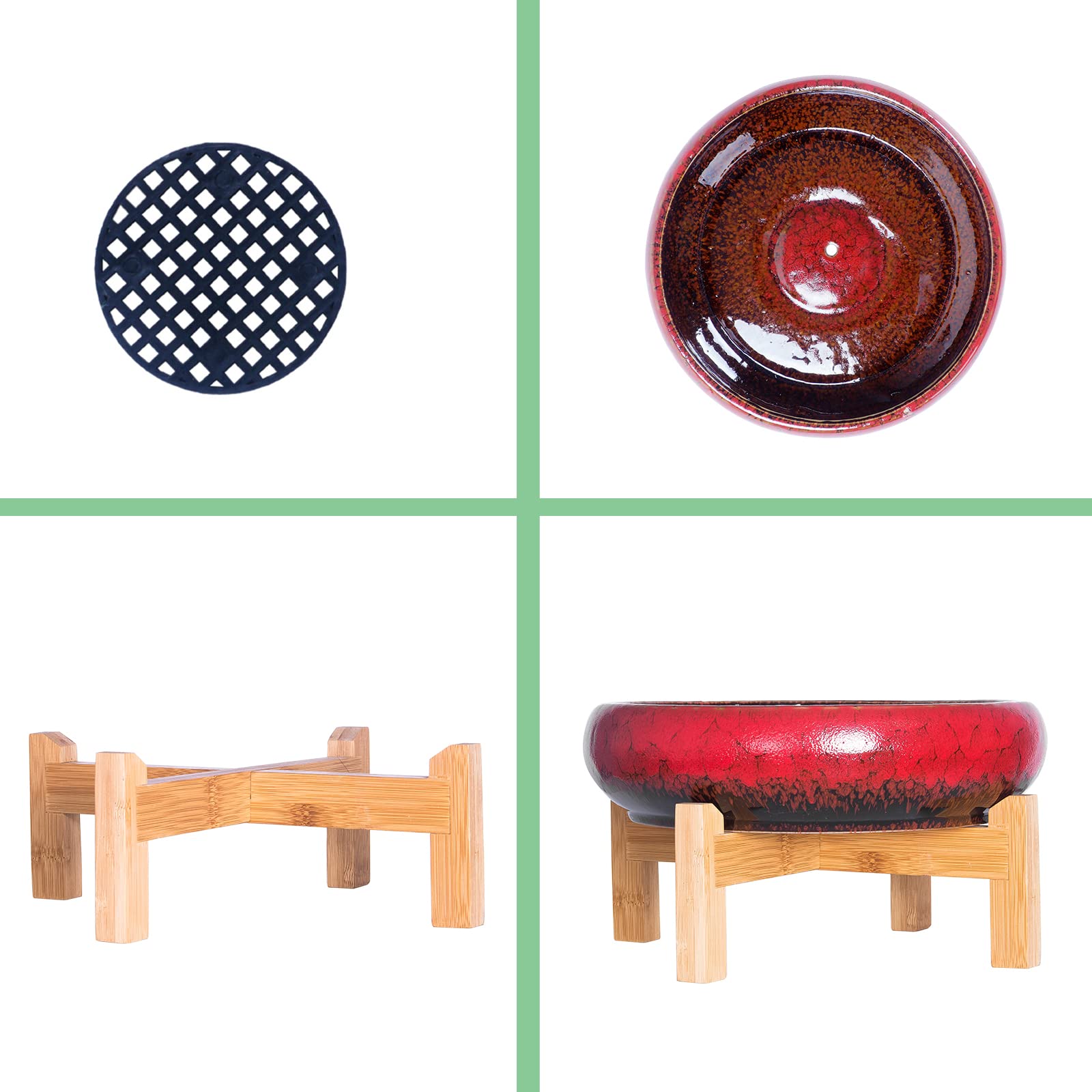 ARTKETTY Grosse runde saftige Pflanzgefäss mit Ständer, Vintage Keramik glasierte Bonsai Topf mit Mess Drainage Bildschirm, dekorative Garten Moderne Kaktusblume Pflanzgefäss Behälter Schüssel (Red)