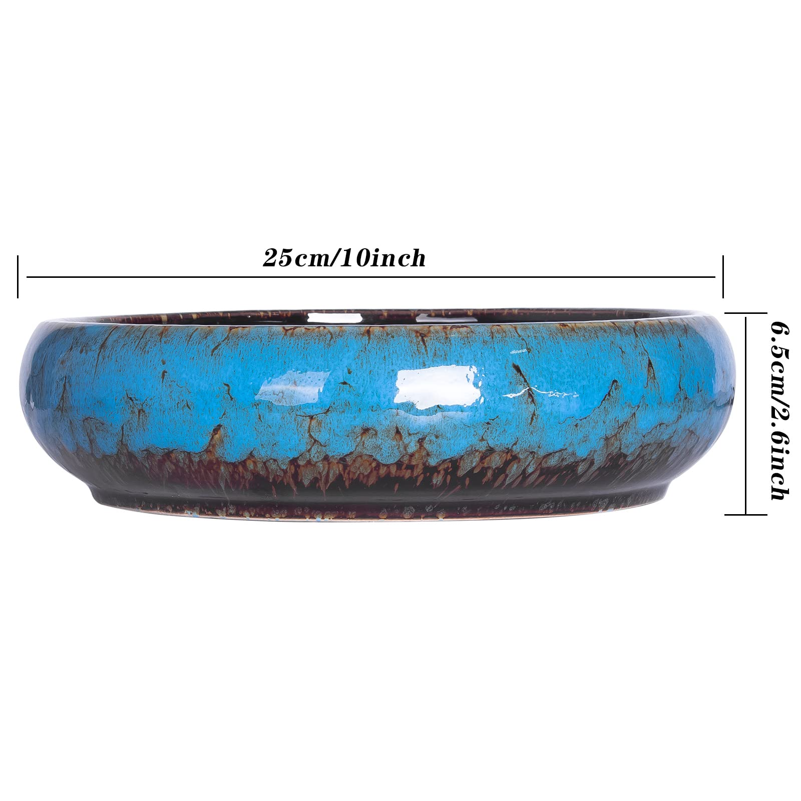 ARTKETTY Grosse runde saftige Pflanzgefäss mit Ständer, Vintage Keramik glasierte Bonsai Topf mit Mess Drainage Bildschirm, dekorative Garten Moderne Kaktusblume Pflanzgefäss Behälter Schüssel (Blue)