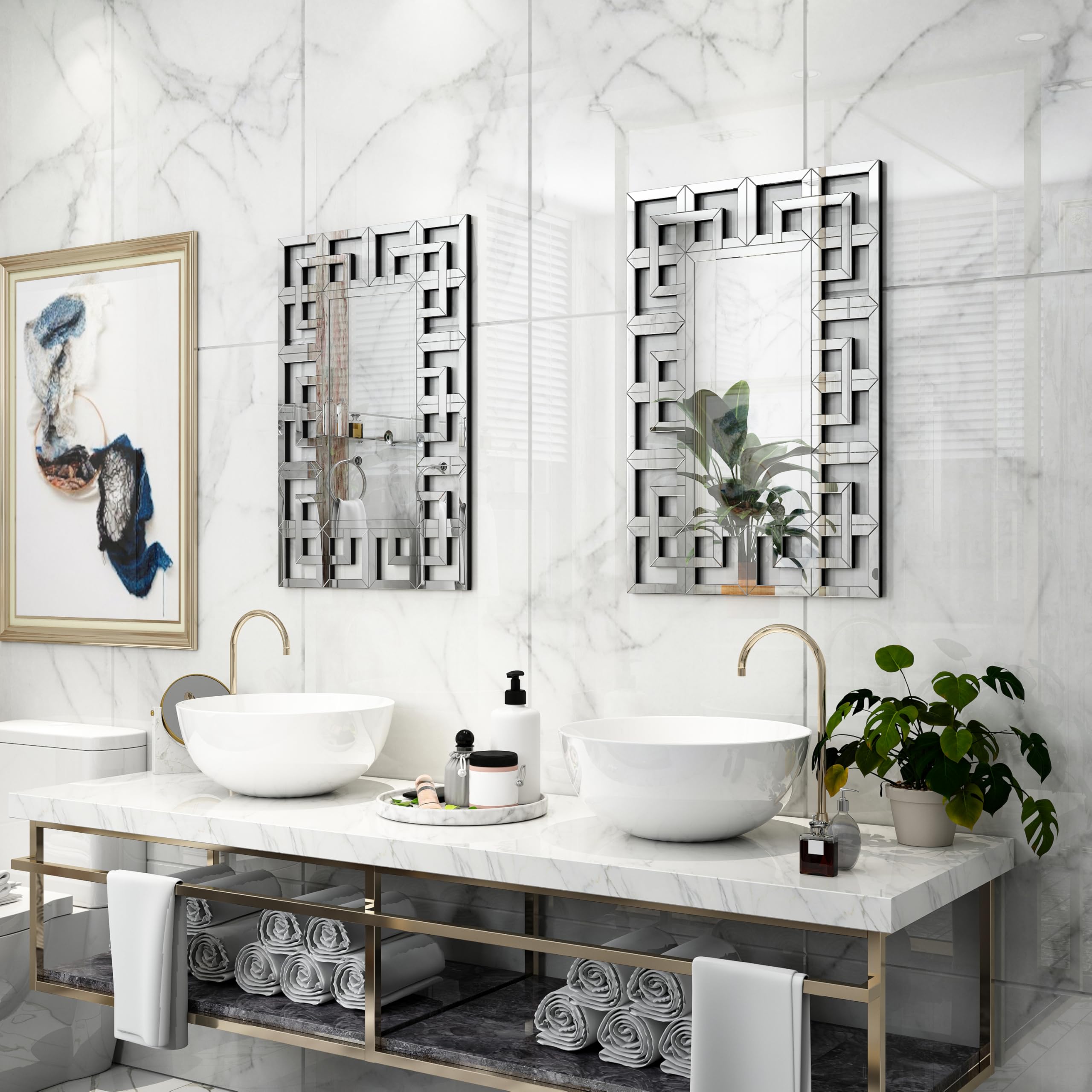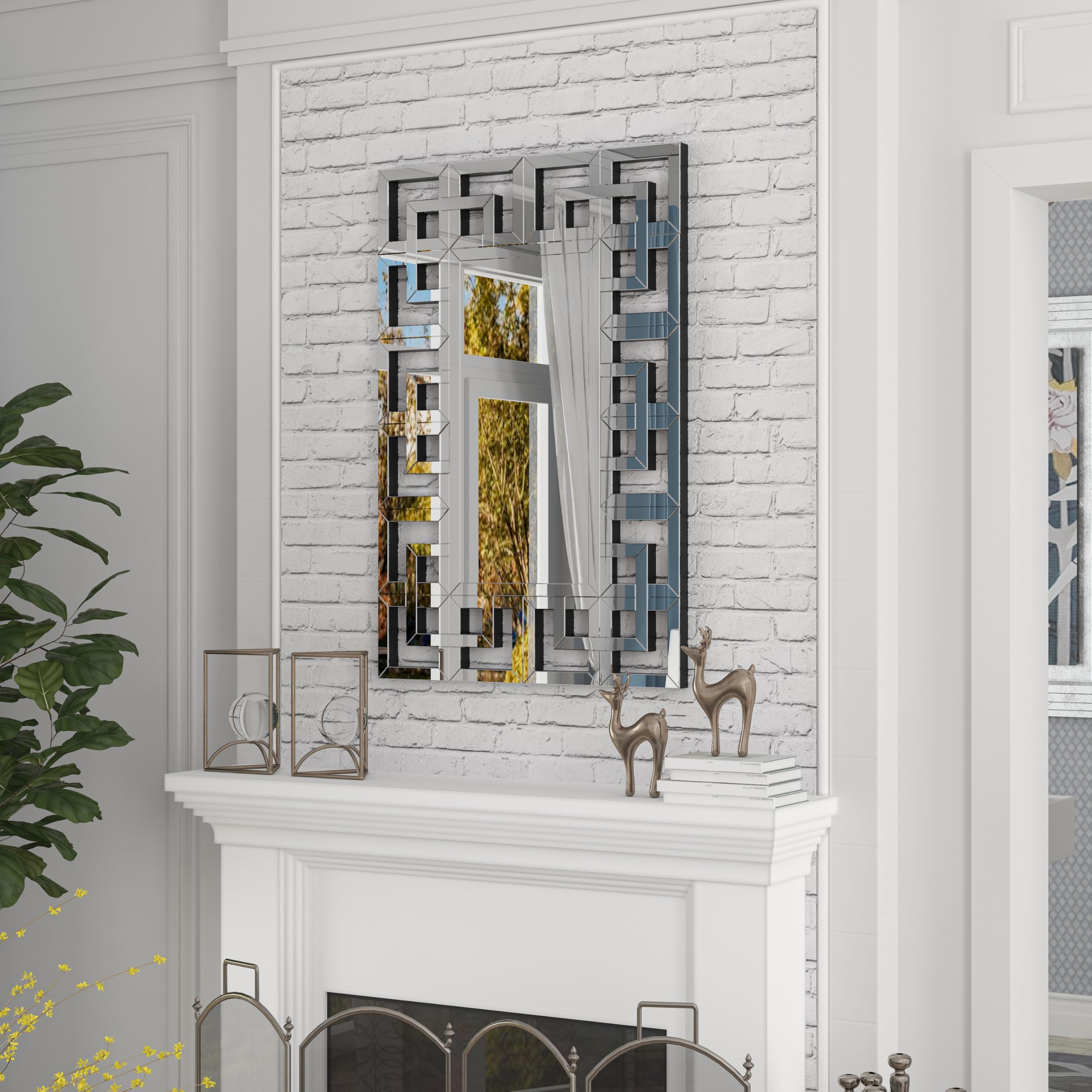 Handbearbeitetes, abgeschrägtes Glas – Inspiriert durch die Kombination aus reflektierenden Spiegeln und geometrischer Glasform, handpoliert am Spiegelrand, vermitteln Sie ein elegantes, sanftes und künstlerisches Raumgefühl für eine aussergewöhnliche Einrichtung. Grosse Wandspiegel sind eine grossartige Möglichkeit, einen Hauch von Luxus zu verleihen Um die Illusion von mehr Platz in einem Raum zu erzeugen, können rechteckige Spiegel in Ihrem Eingangsbereich, über Ihrem Kamin und im Badezimmer aufgehängt werden
