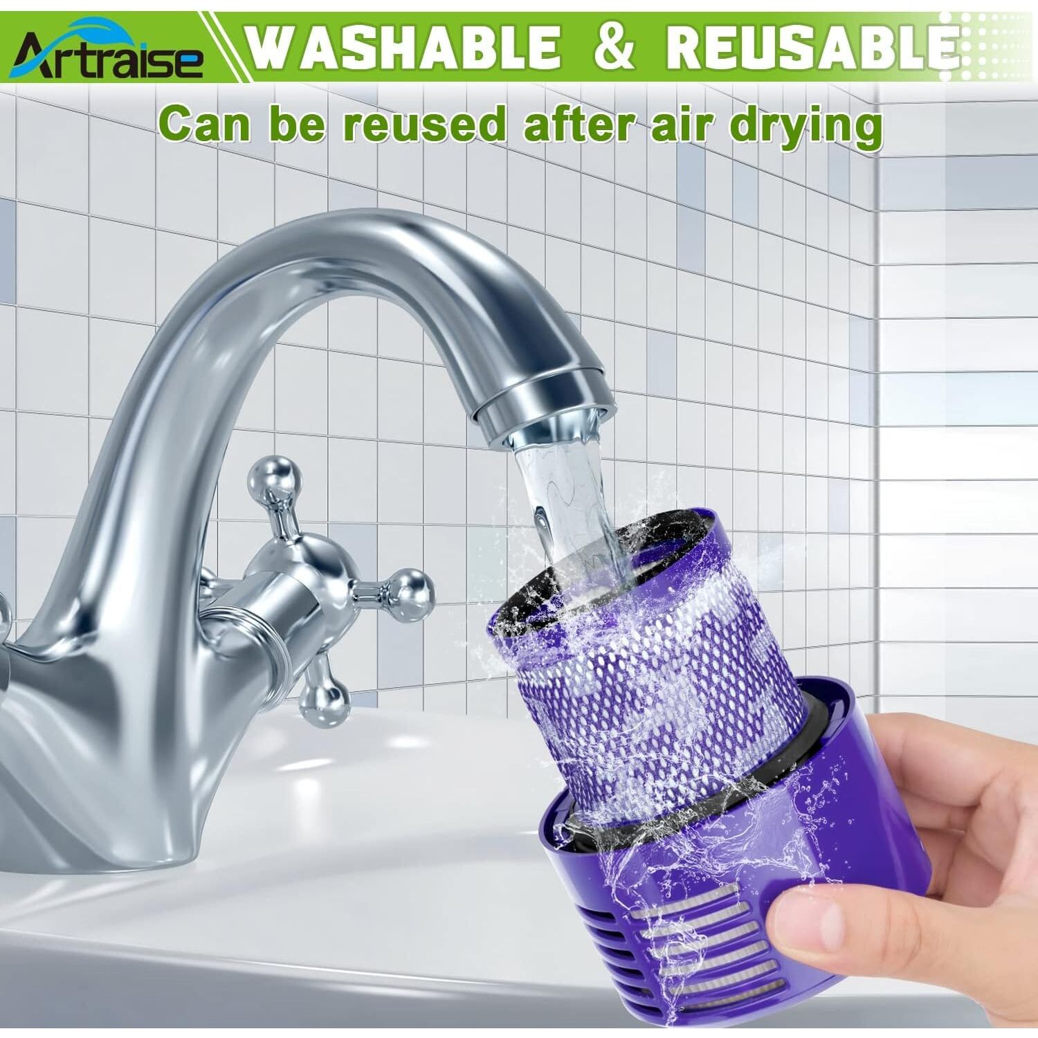 Artraise V10 Filter für Dyson 4 Stück Waschbar Ersatz Hepa Filter für Dyson V10 SV12 Cyclone Animal Absolute Motorhead Staubsauger Ersatzteil Ersetzen Sie # DY-969082-01