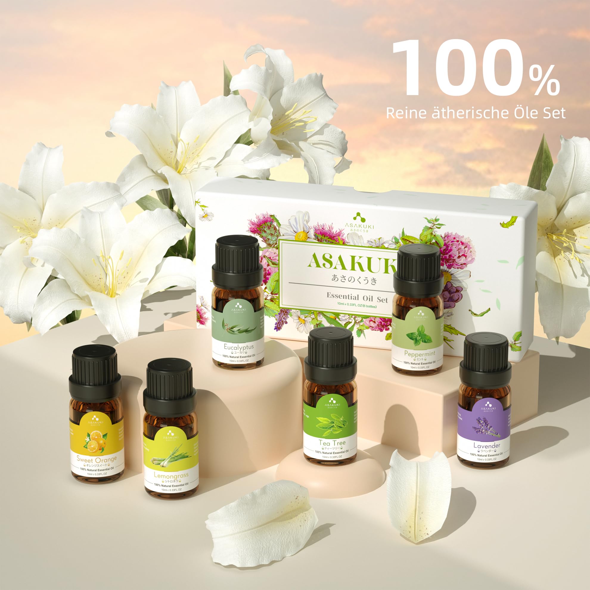 • KOMPLETTES ESSENTIAL-ÖL-PAKET: Die ätherischen Öle von ASAKUKI bestehen aus rein natürlichen Pflanzenextrakten, die sicher und wirksam für Haut und Haar sind, und sind in den Sorten Lavendelöl, Pfefferminzöl, Eukalyptusöl, Teebaumöl, Zitronengras und Süssorangenöl erhältlich.