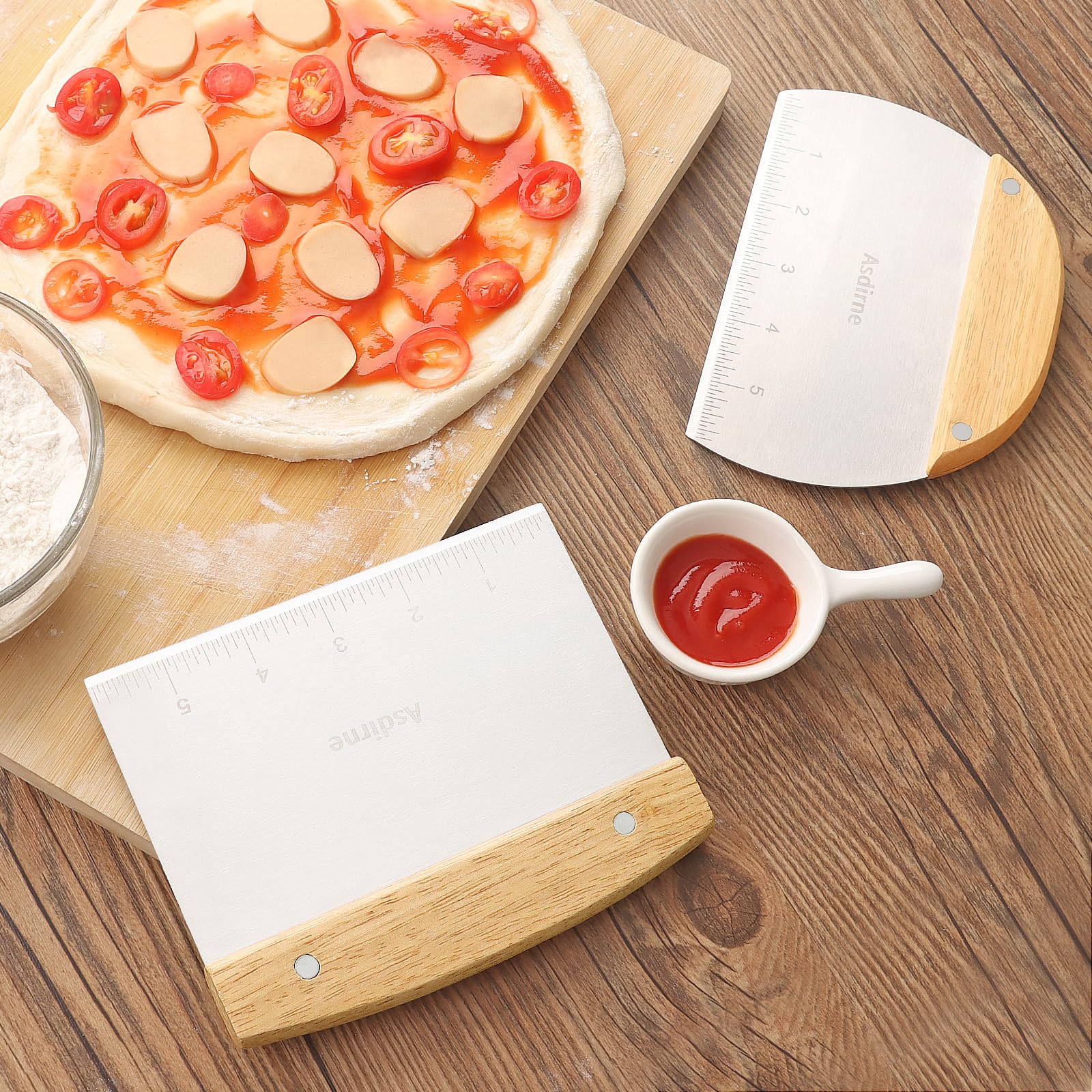 Asdirne Teigschneider, Teigschaber mit Holzgriff und lebensmittelechter Edelstahlklinge, Gebäckschaber, 15 cm, 2 Stück