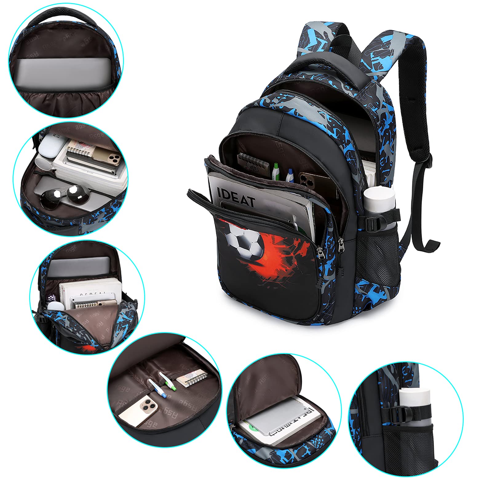 About AsgeInnovation is the main concept of our Asge brand. We are committed to providing our customers with high-quality andoffer cost-effective products that aim to make consumers truly feel the charm of the product itself.Features:Size: (L x W x H) (school bag: 30 x 22 x 46 cm, 11.8 x 8.7 x 18.1 inches).Multiple pockets and compartments, this school bag is large enough to hold your laptop, A4 magazines, umbrella, books,bottles, wallet, iPads, clothes and other items.2. Super lightweight design, adjustable straps and unique handle make it easy and long-term wearing comfortFor all daily use and backpack weight is 0.58 kg, it is lightweight and large for 8-16 years children, teenagers and students.3. This robust Oxford fabric backpack has padded straps for more comfort, padded protection for laptop or tabletand padded cushions to protect your back when you carry something heavy. Perfect compartment designed can be set all daily student essentials.4. Not easy to get dirty, durable waterproof fabric and smooth zip. Children can use it for a long time.5. Two side sealed pockets provide more stable and safer storage than other mesh bags, bottles for children.6. Versatile and individual design, fashionable look. Ideal for use as a school bag, backpack, school bag,Casual backpack for everyday use at school, work, weekend, occasional travel, gyms, hiking, etc.Beautiful size fits perfectly for students, girls, boys and adults.
