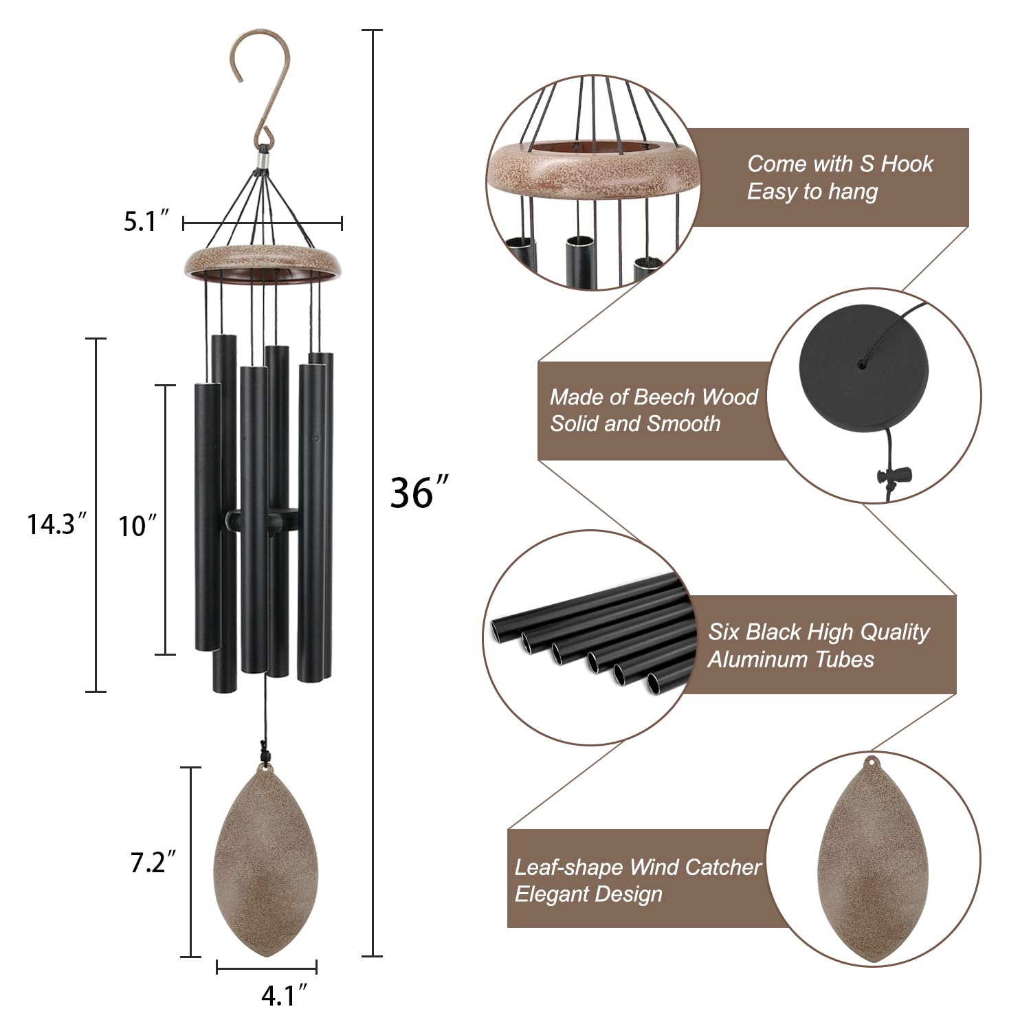 ASTARIN Windspiel für Garten, Gedenkstätte, Beileidsgeschenk, Dekorationen für Terrasse (Metall, Schwarz)