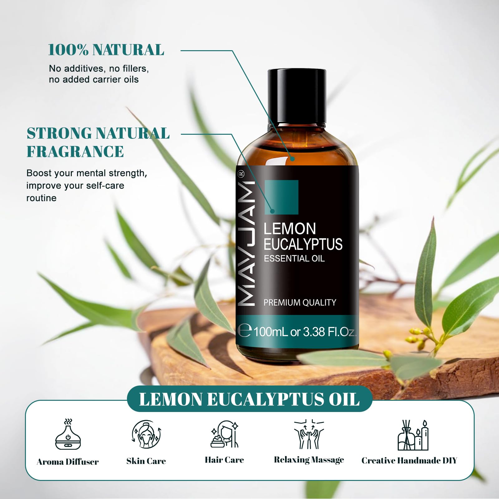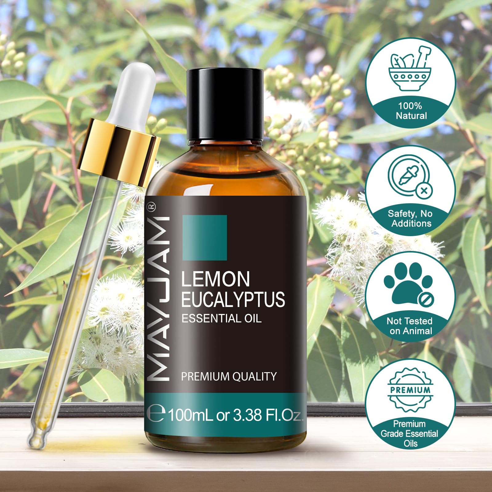 Ätherisches Öle Zitrone Eukalyptus 100ML, MAYJAM Zitrone Eukalyptusöl 100% Rein, Ideal für Reisen Aromatherapie Diffuser Duftöl Massage