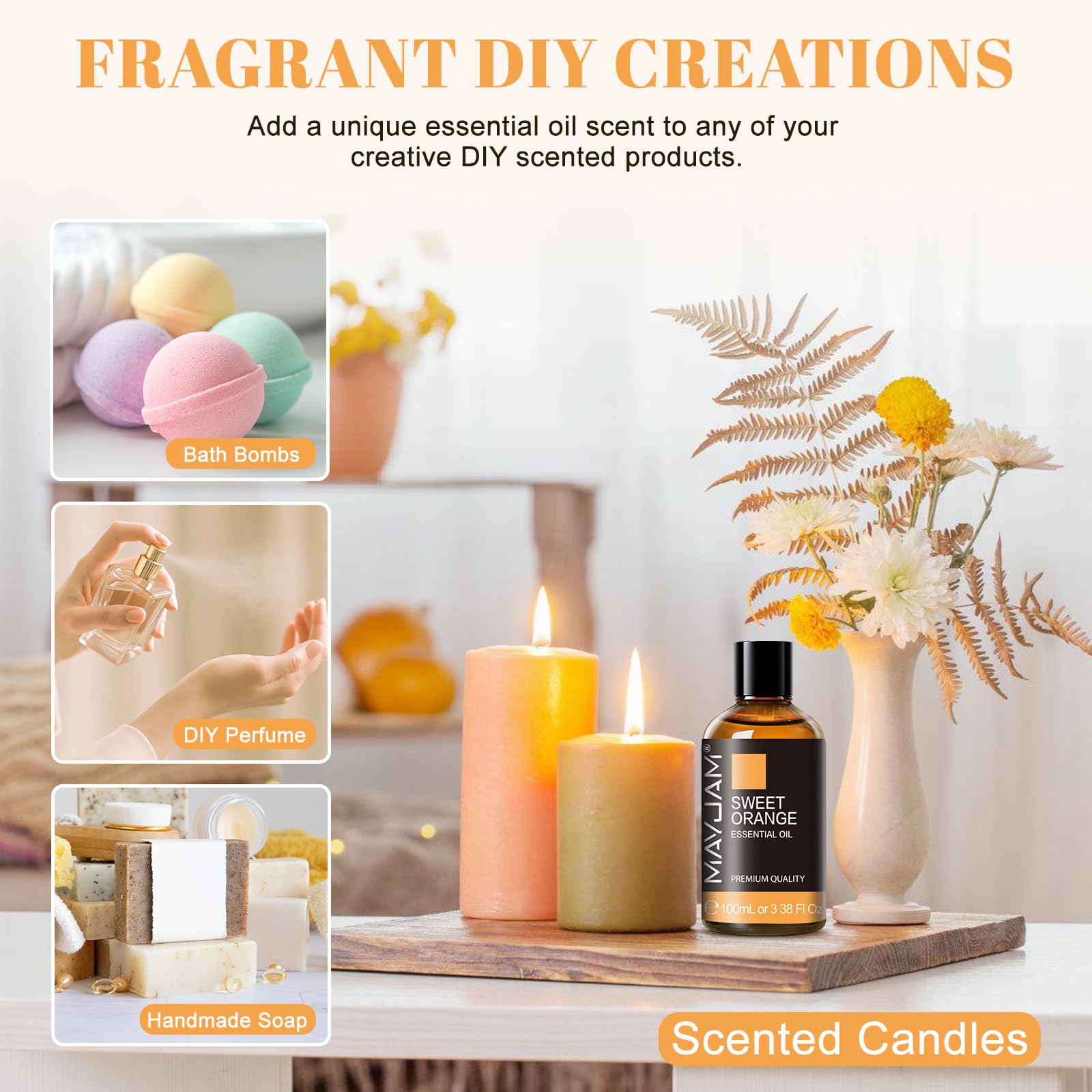 Ätherisches Öle Süssorange 100ML, MAYJAM Süssorangeöl 100% Rein, Ideal für Fröhlich Aromatherapie Diffuser Duftöl Massage