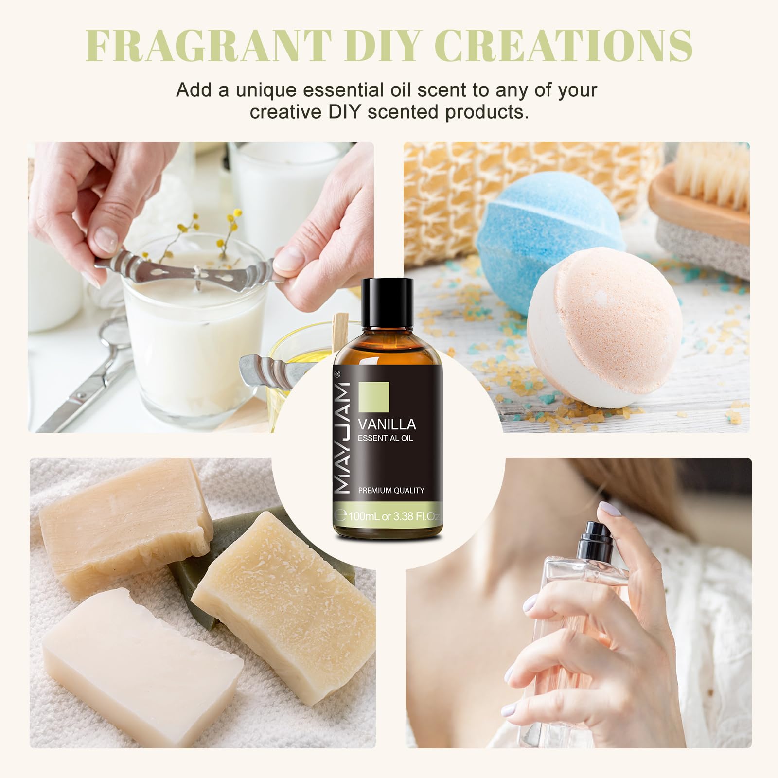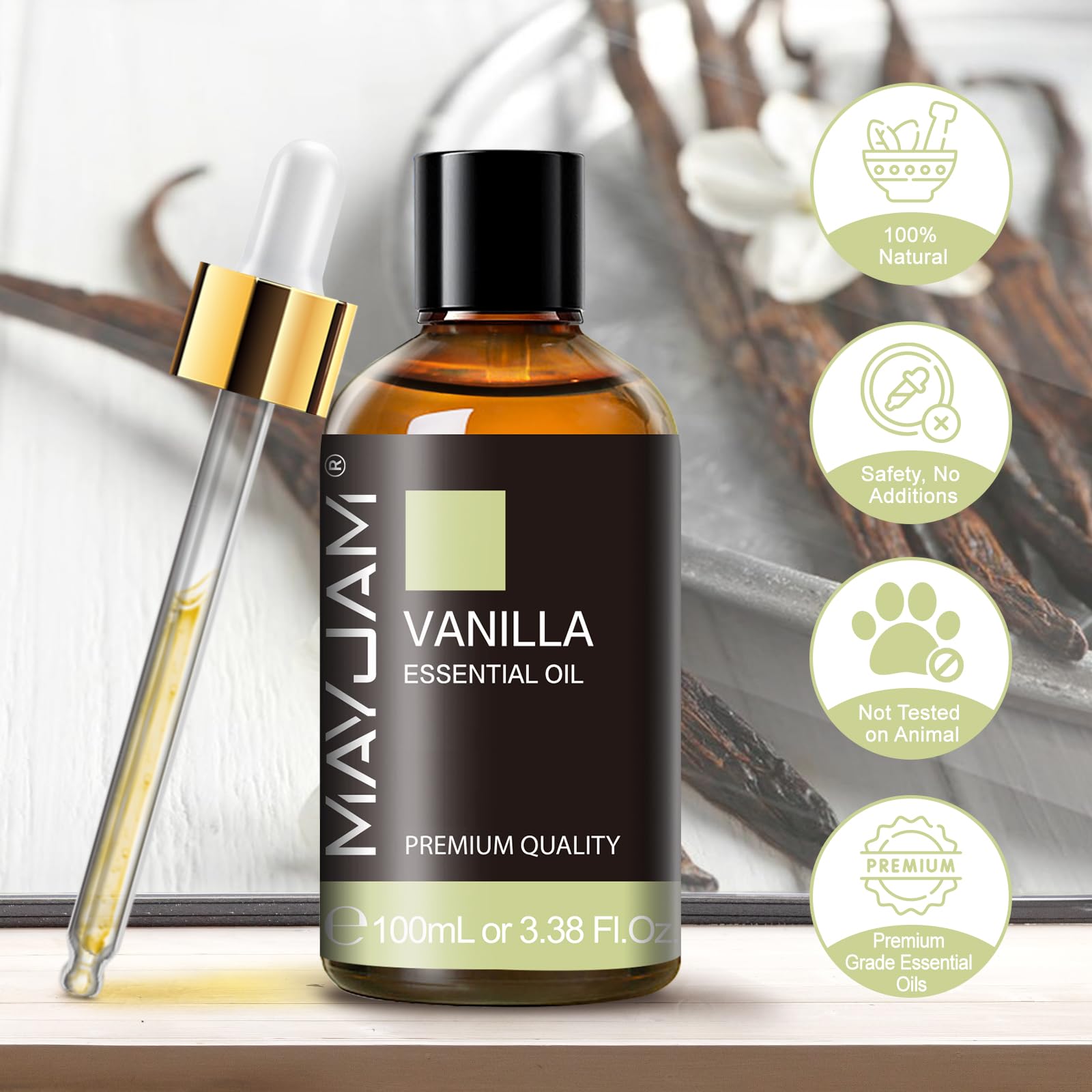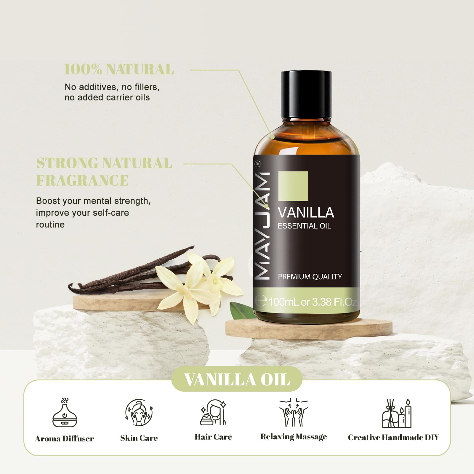 Ätherisches Öle Vanille 100ML, MAYJAM Vanilleöl 100% Rein, Ideal für Aromatherapie Diffuser Duftöl Massage
