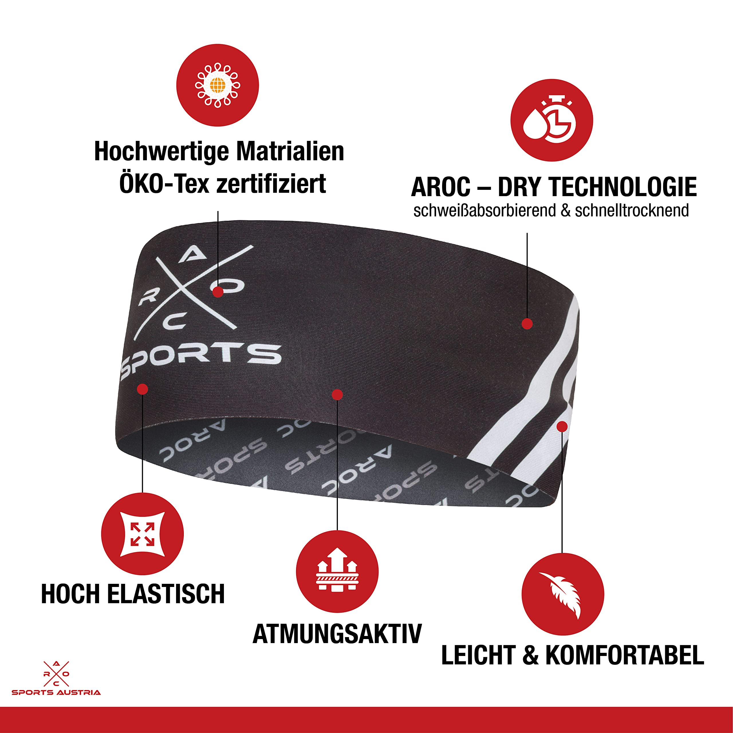 Unser Sportstirnband ist der perfekte Begleiter für all deine sportlichen Aktivitäten und Outdoor-Abenteuer. Egal, ob beim Laufen, Wandern, Radfahren oder bei alpinen Sportarten – das Funktionsstirnband bietet Schutz und höchsten Tragekomfort. Dank der AROC-DRY Technologie wird Schweiss schnell absorbiert und das Material trocknet innerhalb kürzester Zeit, sodass du stets ein angenehmes und trockenes Tragegefühl hast. Doch nicht nur beim Sport überzeugt unser Stirnband: Auch bei herbstlichen Spaziergängen, winterlichen Outdoor-Aktivitäten oder Gartenarbeiten sorgt es für ein angenehmes Klima und schützt deine Stirn sowie Ohren vor Wind und Kälte. Das Stirnband besteht aus einer hochwertigen Materialmischung aus Polyester und Elasthan. Der hohe Elasthan-Anteil sorgt für eine perfekte Passform und gewährleistet, dass das Stirnband jederzeit sicher und rutschfest sitzt – egal, wie intensiv deine Bewegungen sind. Die elastische Einheitsgrösse macht das Headband für Damen, Herren und Kinder gleichermassen geeignet. Durch seine enganliegende Passform kannst du es problemlos unter Helmen tragen – sei es unter einem Fahrradhelm, Skihelm oder Motorradhelm. Es verrutscht nicht und bietet dennoch ein angenehmes Gefühl auf der Haut. Unser Funktionsstirnband ist nicht nur funktional, sondern auch pflegeleicht: Es kann problemlos bei 30 Grad gewaschen werden, ohne dass die Qualität oder das Design beeinträchtigt werden. Dank der langlebigen Materialien behält das Stirnband auch nach häufigem Waschen seine Form und Funktionalität. Zudem achten wir auf eine nachhaltige und hochwertige Produktion – unser Produkt ist made in Europe und nach dem OEKO-TEX 100 Standard zertifiziert. Das bedeutet, dass wir ausschliesslich hautfreundliche Materialien verwenden, die frei von schädlichen Substanzen sind und höchsten Qualitätsstandards entsprechen. Das leichte und atmungsaktive Material sorgt dafür, dass du dich jederzeit wohlfühlst – egal ob bei sommerlichen Temperaturen oder kühlen Winden.