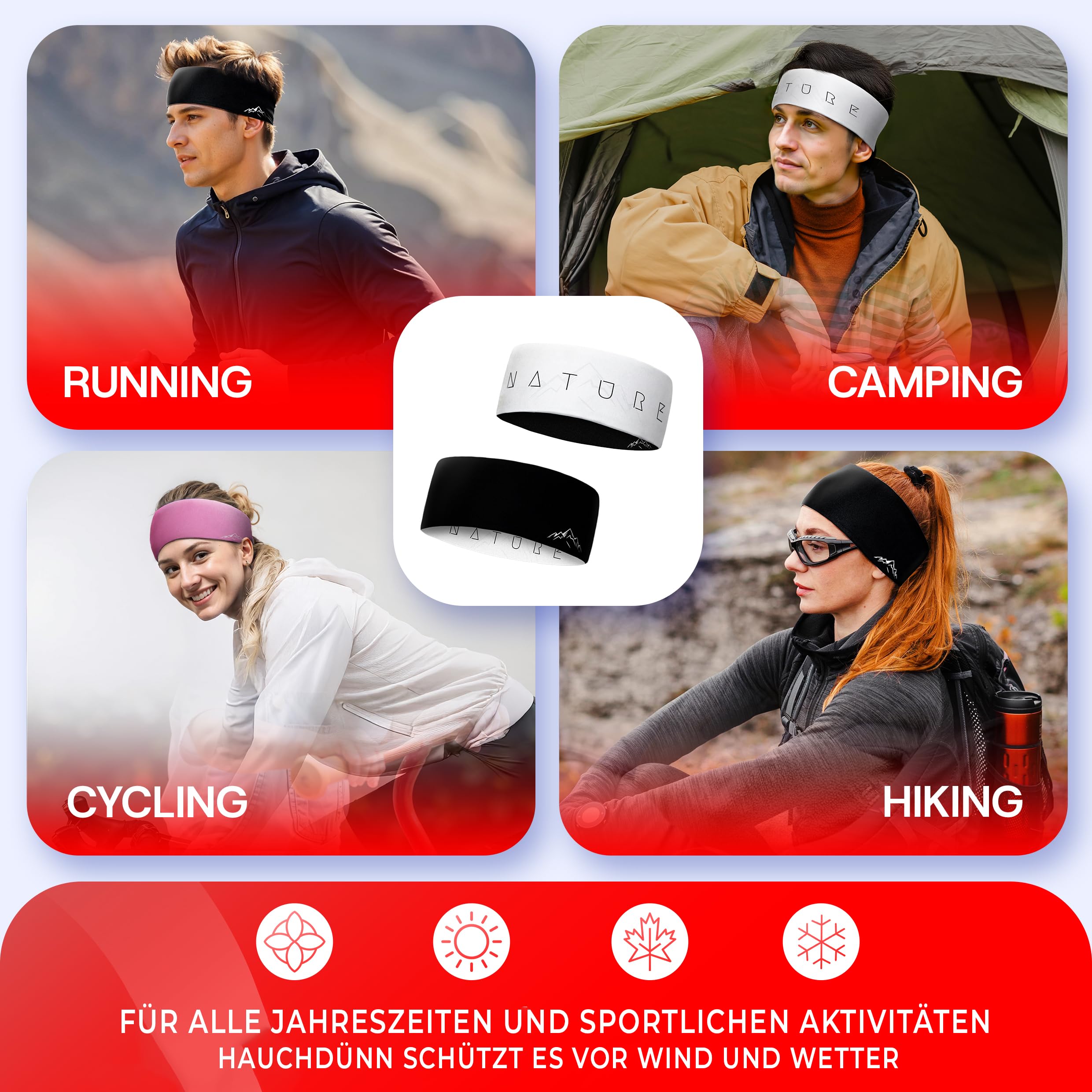 Atmungsaktives Sport Stirnband Damen & Herren - schnelltrocknendes Kopfband zum Wenden - leichtes & elastisches Haarband, winddichtes Schweissband Stirn