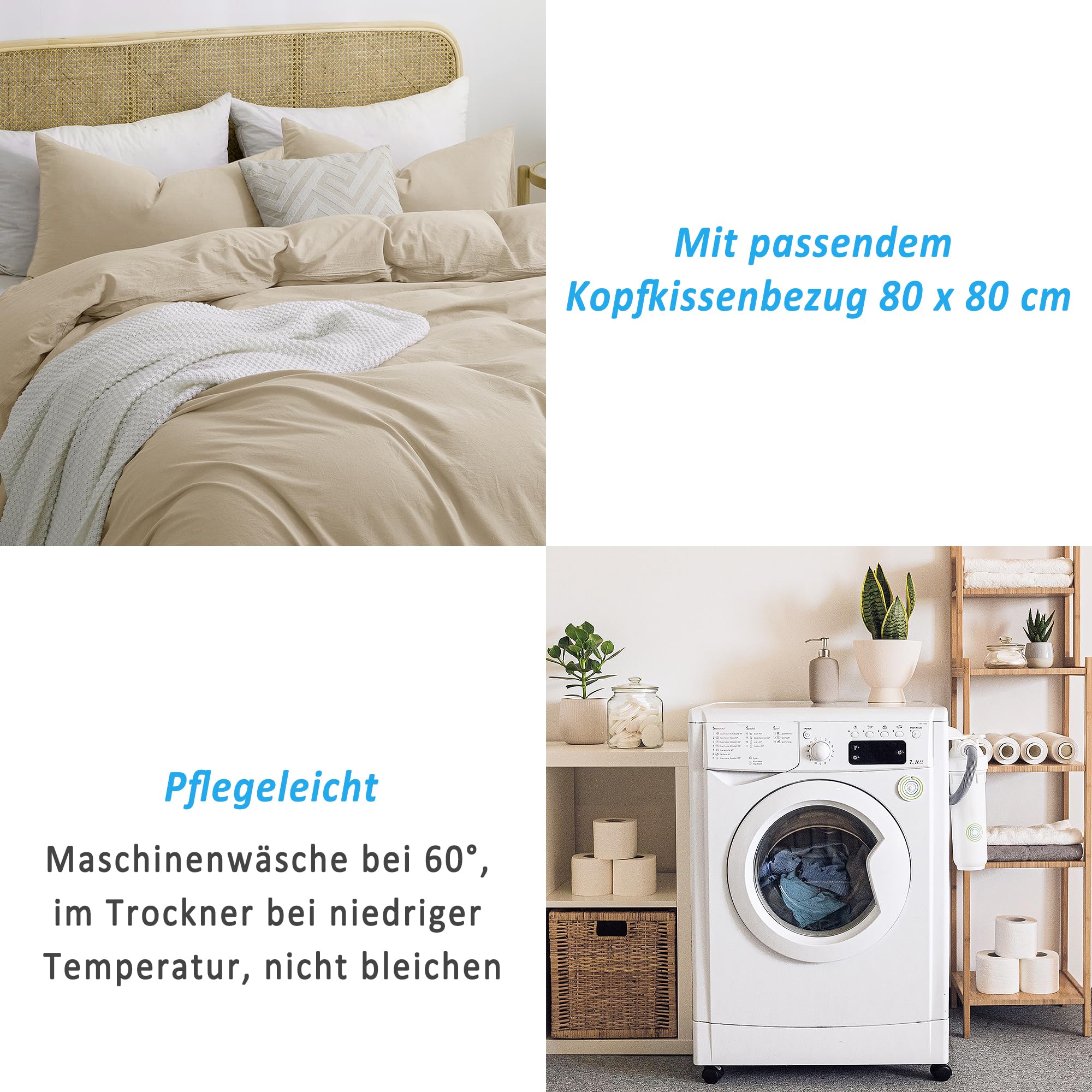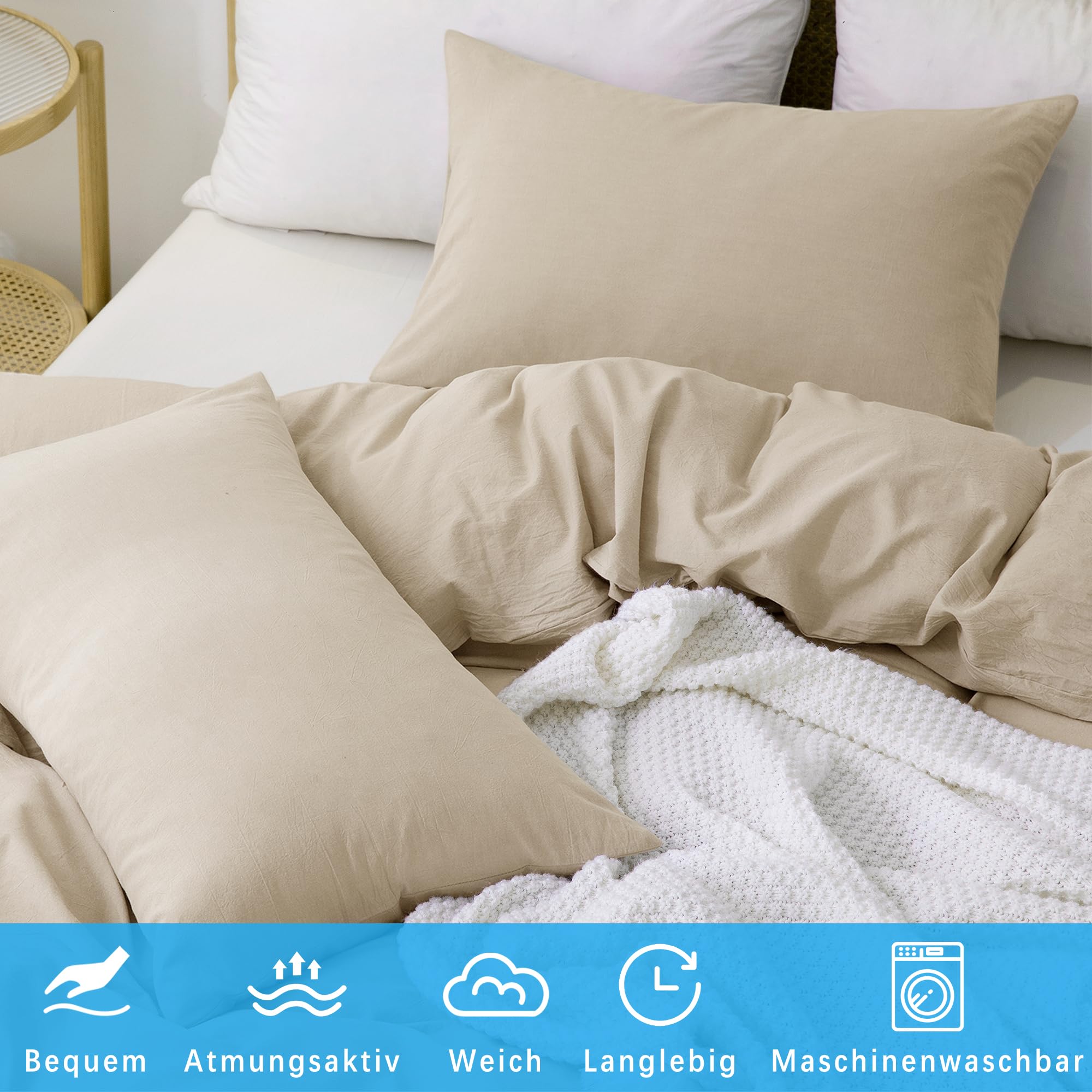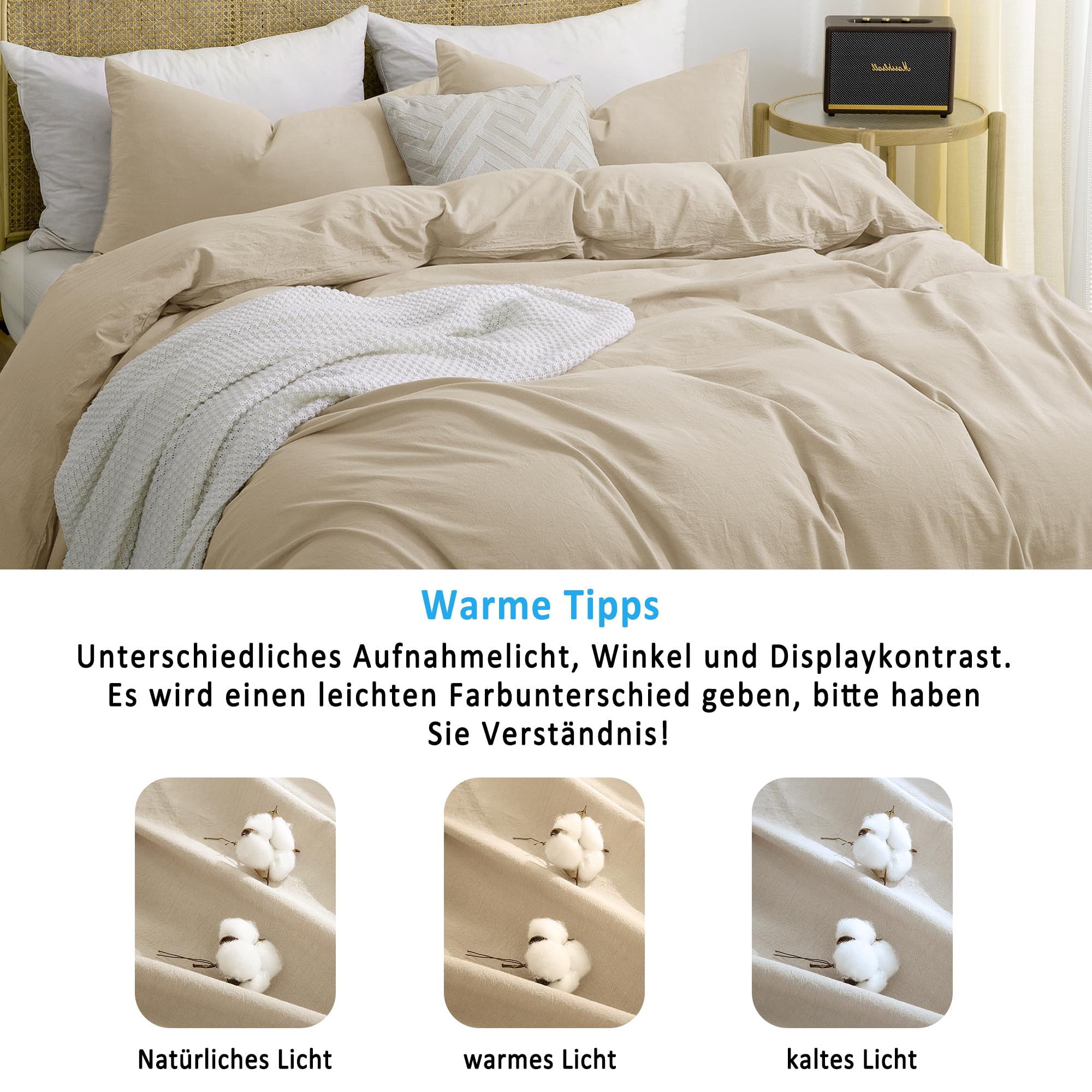 - Bevorzugtes Material: Ausgewählte, hochwertige Bettwäsche aus 100 % gewaschener Baumwolle, die nicht leicht reisst, weich und atmungsaktiv, antistatisch, bequem und langlebig ist und sich für Menschen mit empfindlicher Haut eignet, um Ihnen eine ideale Schlafumgebung zu bieten. Der beige Bettwäsche-set ist von OEKO-TEX Standard 100 Fabrik gemacht, können Sie sicher sein, es zu benutzen!