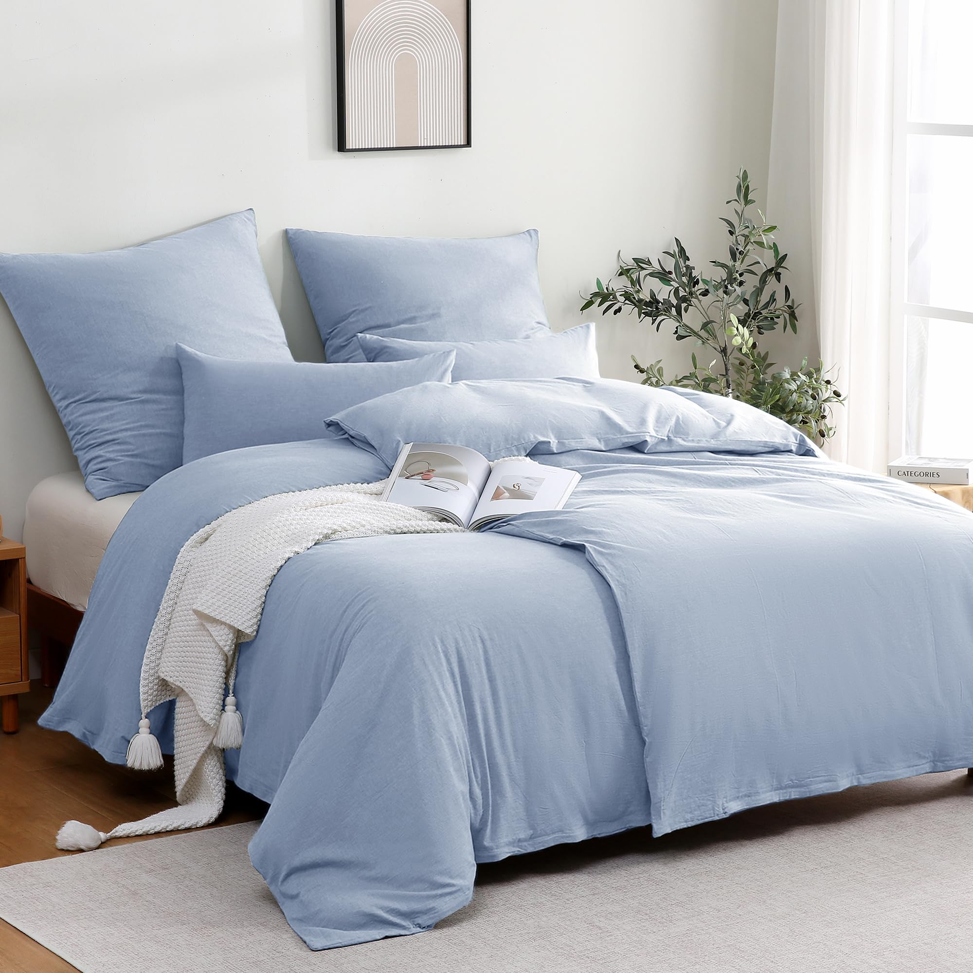 ATsense Bettwäsche 135x200 Baumwolle 4teilig, Stonewashed Bettwäsche-Sets Himmelblau Ähnlich wie Leinen, Oeko-TEX, Hypoallergen und Atmungsaktiv, 2 Bettbezug und 2 Kissenbezug 80x80