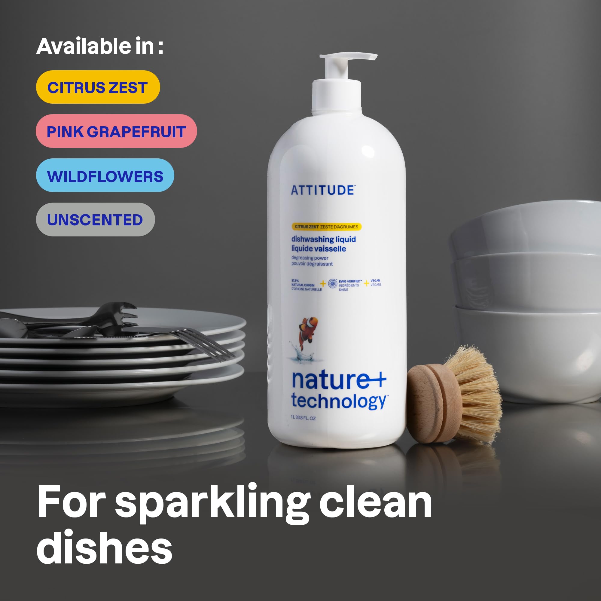 Attitude Geschirrwaschmittel, pflanzlich, hypoallergen, umweltfreundlich, 13183, 1