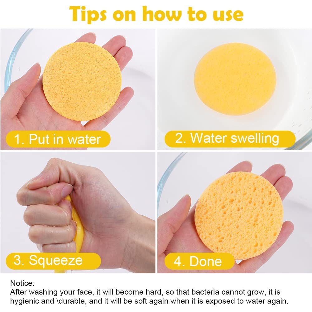 Die Zellulose-Gesichtsschwaemme reinigen die Poren gruendlich und entfernen Make-up, Schmutz, Oel, Maskenreste und abgestorbene Hautzellen. Gleichzeitig peelen sie die Haut sanft, ohne sie zu reizen. Das Ergebnis ist ein sauberes, frisches und ebenmaessiges Hautbild.