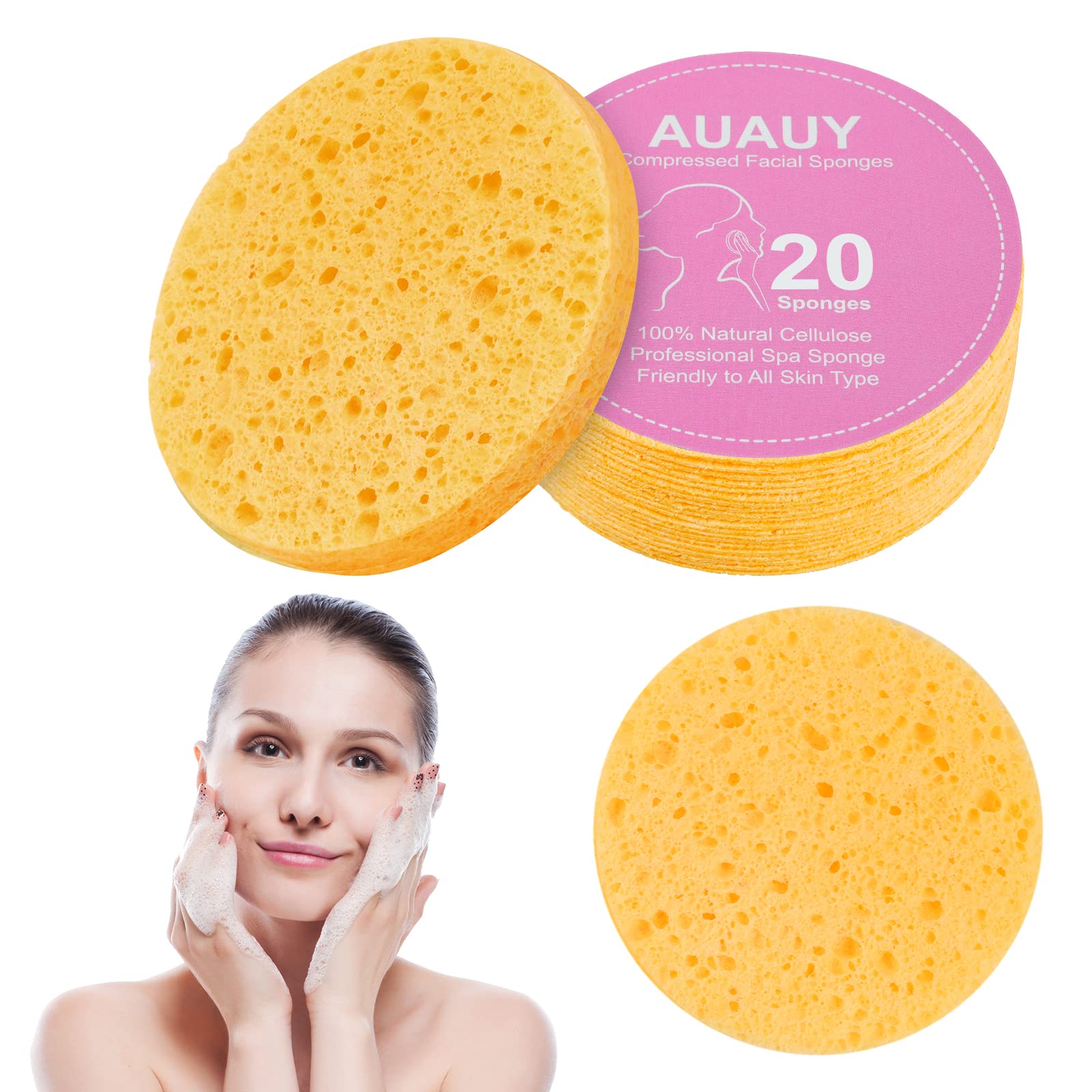 AUAUY 20-teiliges Set komprimierter Gesichtsschwaemme – Natuerliche Zellulose fuer gruendliche Gesichtsreinigung