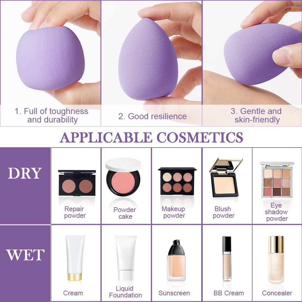 Das AUAUY 4-teilige Make-up-Schwamm-Set bietet alles, was du fuer ein gleichmaessiges, natuerliches und professionelles Make-up benoetigst. Mit verschiedenen Schwammformen, einem praktischen Schwammhalter und einer Puderquaste eignet sich dieses Set ideal fuer fluessige Foundation, Puder, Sonnenschutz, BB-Creme, Concealer sowie cremige Texturen. Perfekt fuer den taeglichen Einsatz, Reisen oder als stilvolles Geschenk.