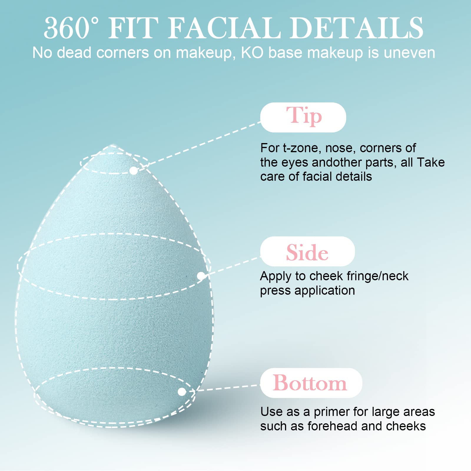 Die verschiedenen Schwammformen ermoeglichen gezieltes Arbeiten an allen Gesichtspartien: