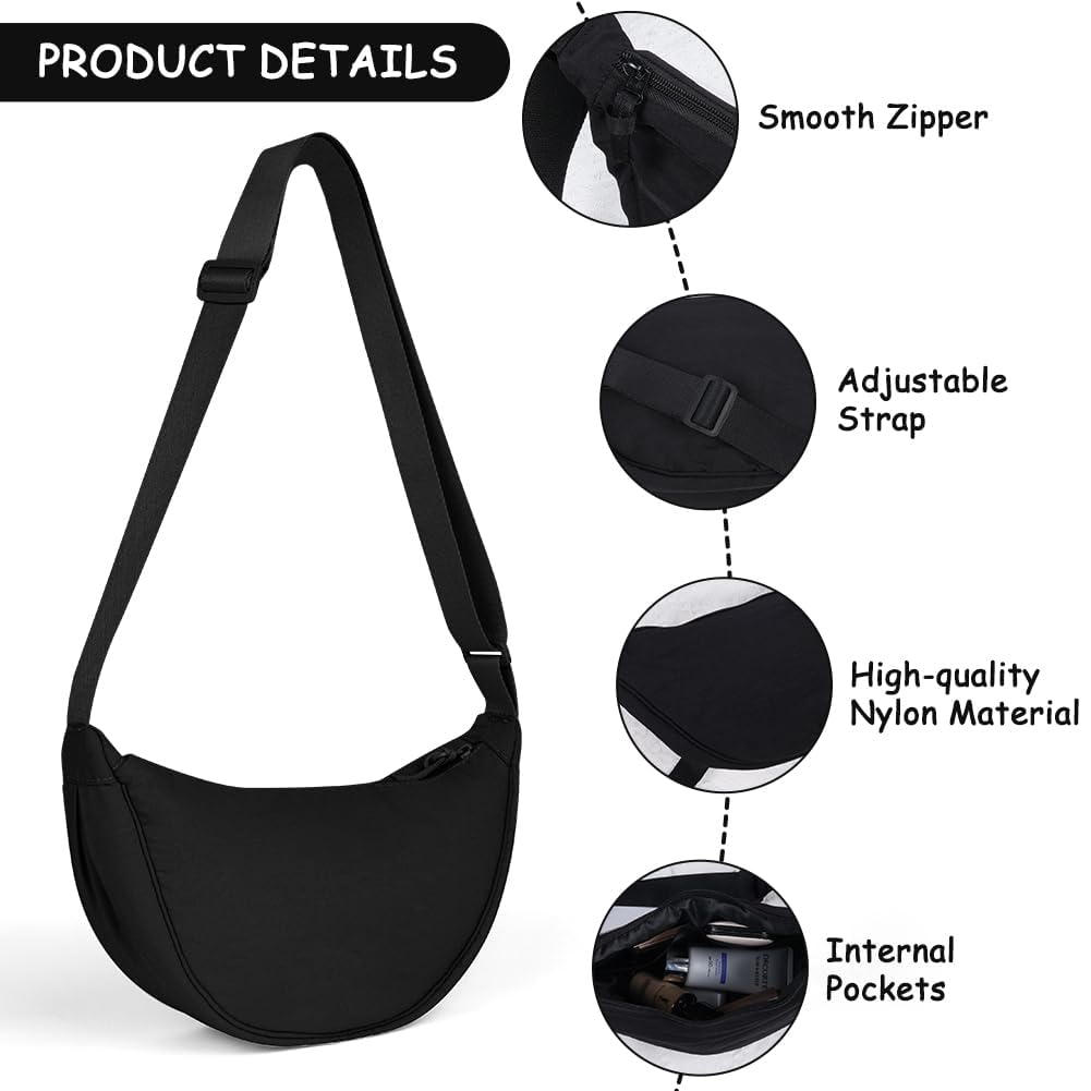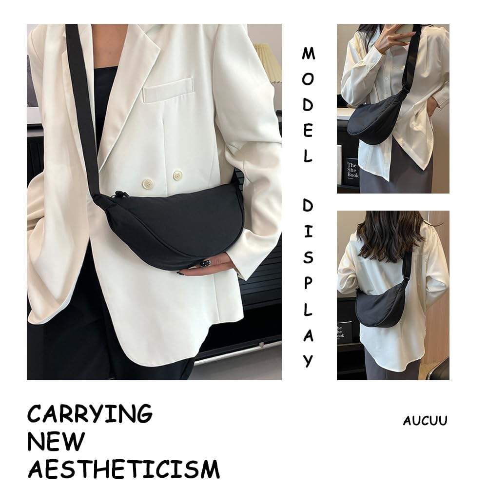 Aucuu Damen Halbmond Crossbody Schultertasche, Crossbody Bag Damen, Umhängetasche Damen Klein mit Verstellbarer Schultergurt, Hobo Halfmoon Bag Einfarbige Messenger Bag für Damen Reisen