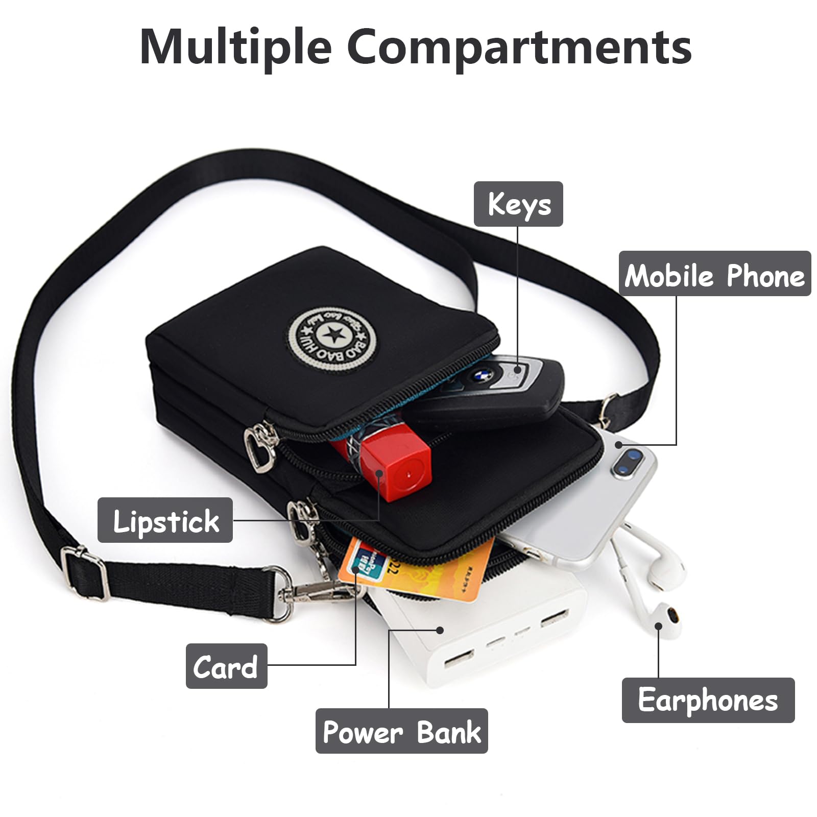 Aucuu Handytasche zum Umhängen Damen,Nylon Kleine Umhängetasche mit Kopfhörer Eingang,Mini Crossbody Schultertasche Handytasche,Handy Schultertasche ür Handy unter 7 Zoll