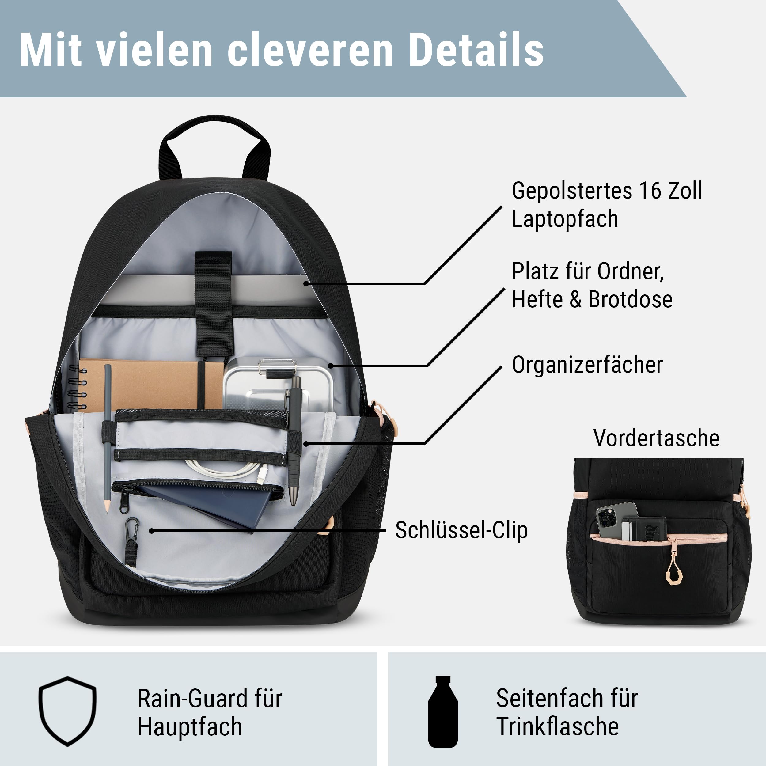 Dank Imprägnierung wasser- und schmutzabweisend Viel Stauraum für Laptop bis 16 '', Unterlagen und mehr