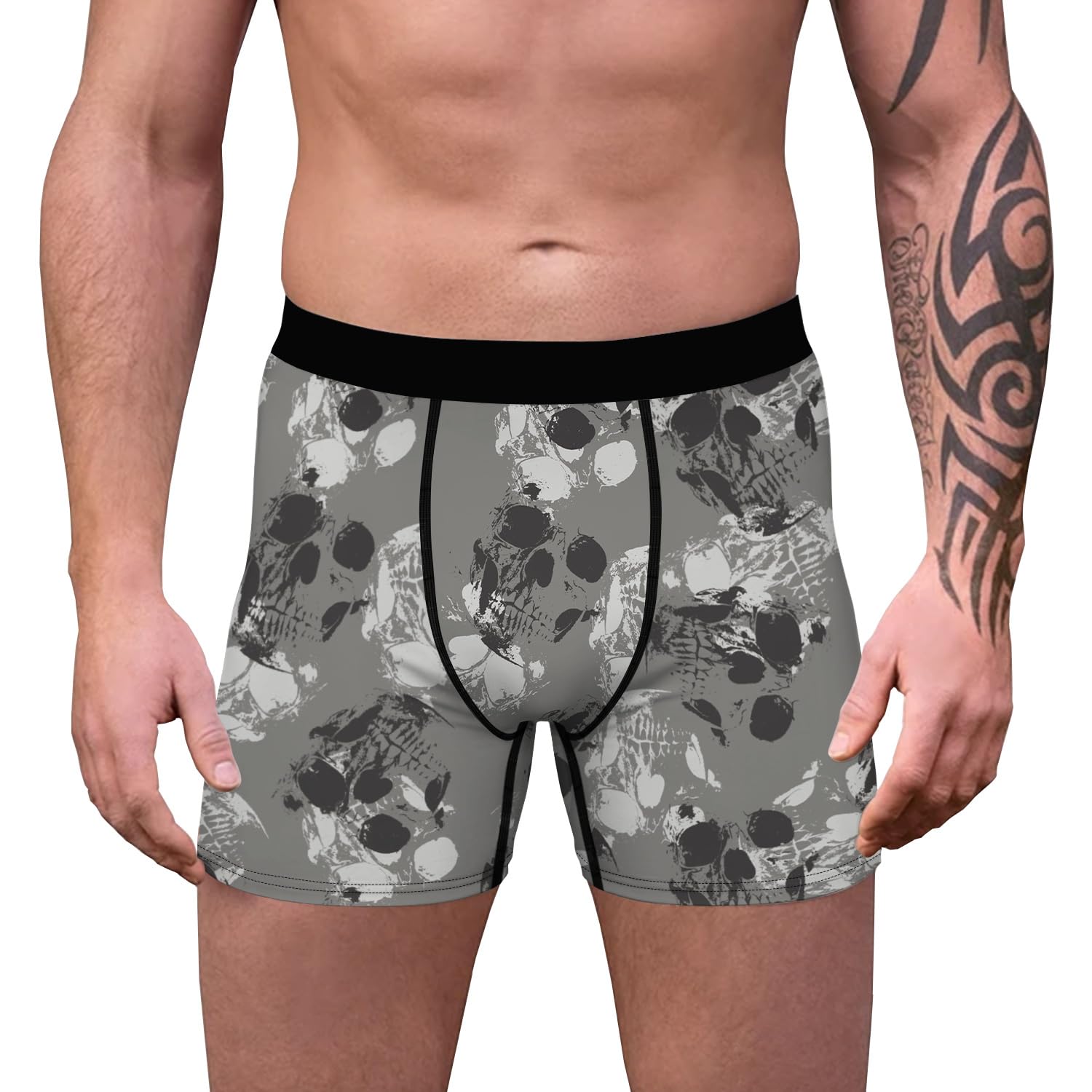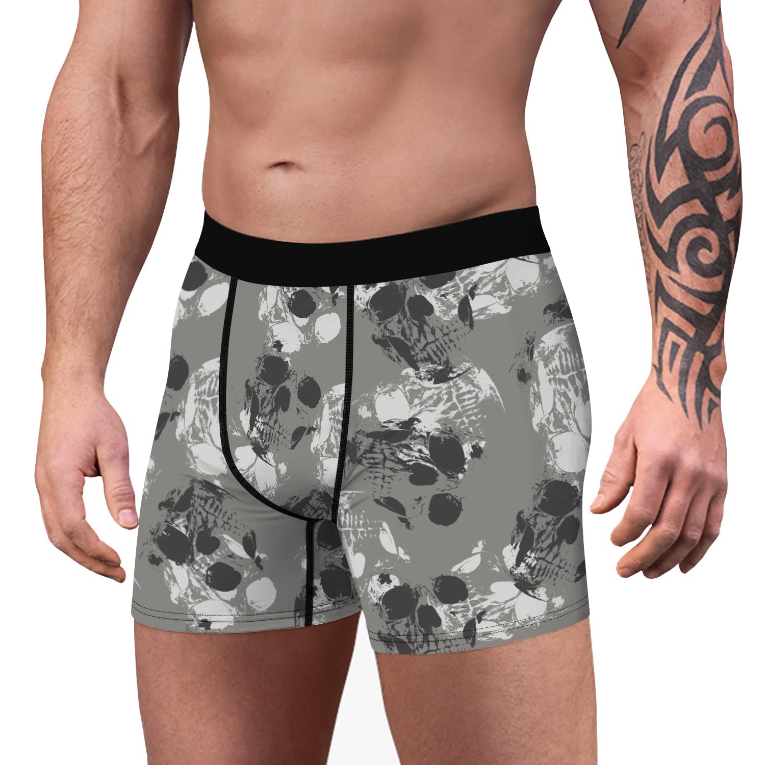 Halloween-Unterwäsche für Herren, Totenkopf-Boxershorts, Gothic-Unterhose. Merkmale: Mittelhoher Schnitt, elastischer Bund für eine bequeme Passform. Kein Eingriff vorne. Schnell trocknendes Material leitet Schweiss ab und hält dich kühl und trocken. Das Stay-Put-Beindesign verhindert ein Hochrutschen. Kurzes Bein, 10,2 cm Schrittlänge. Anlass: Halloween-Kostüm, Cosplay-Party, Gothic-Event, Halloween-Tag.