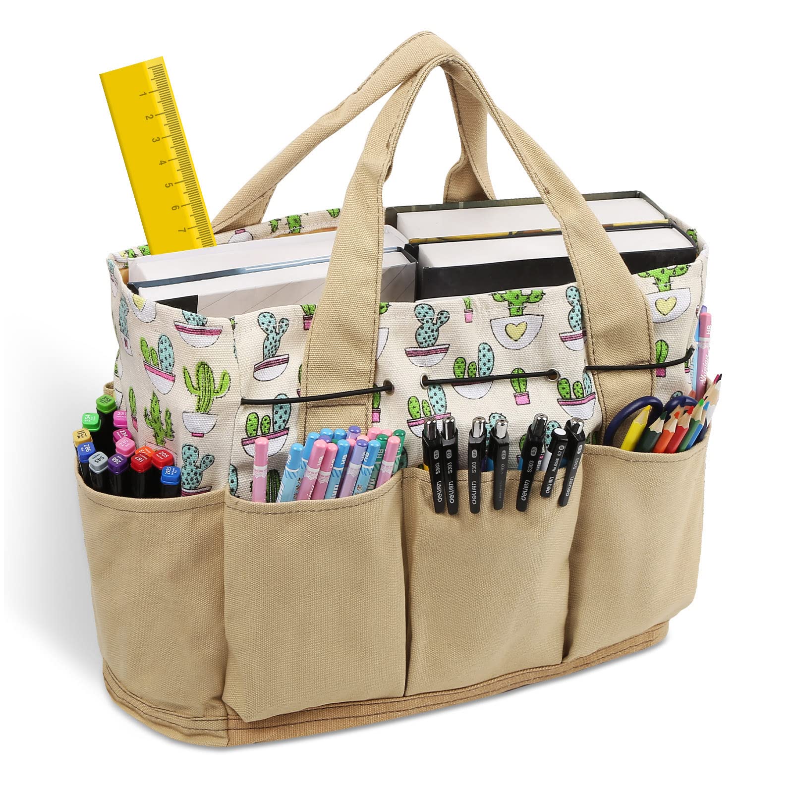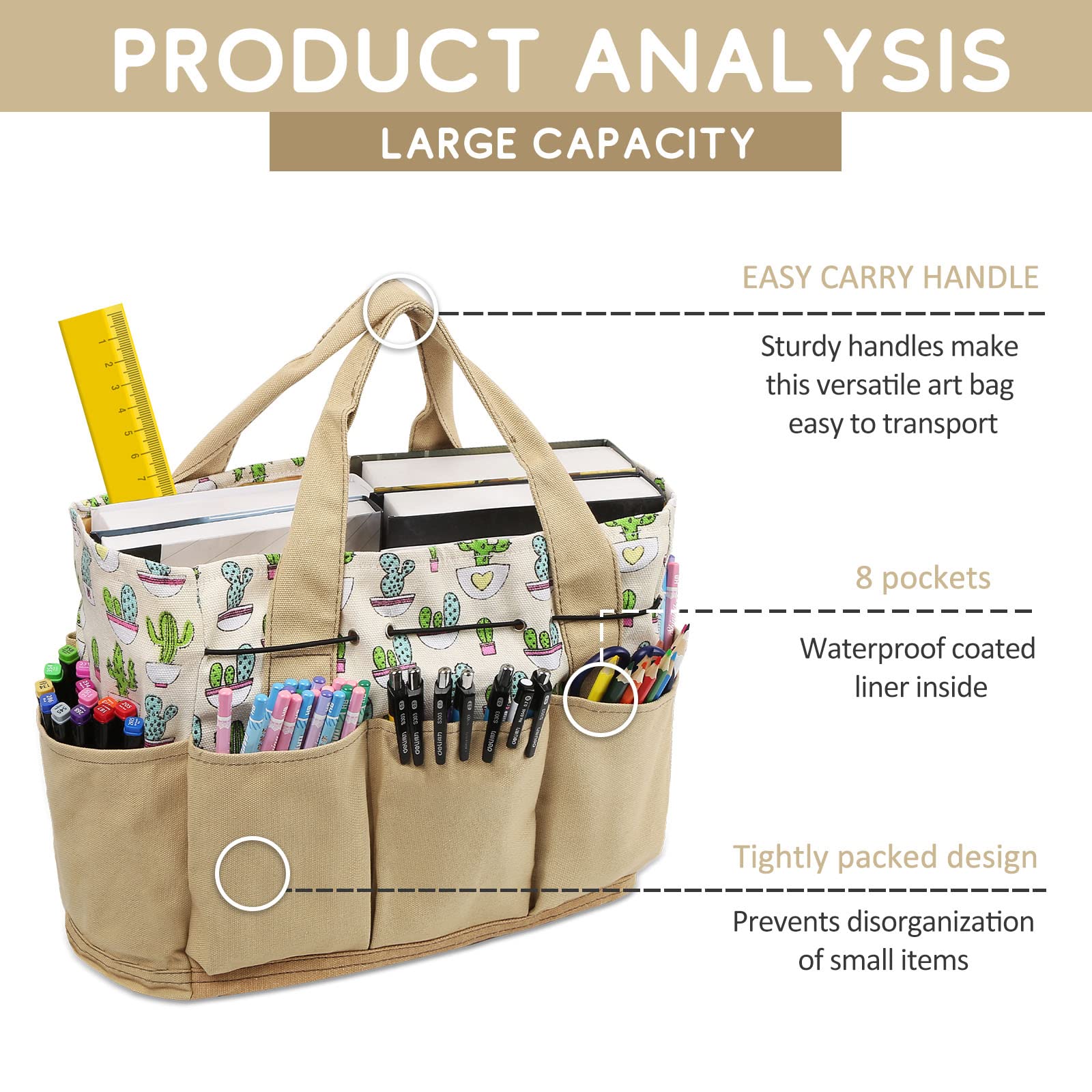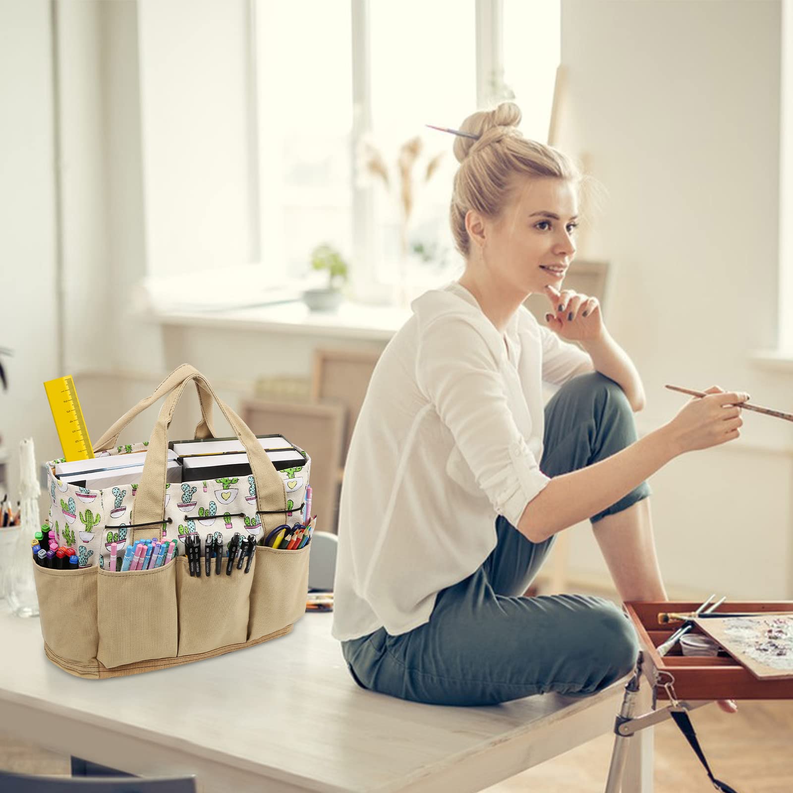 Aufbewahrungs-Organizer für Kunstbedarf, Kunstbedarf, Bastel-Organizer und Aufbewahrung, Kunst-Tragetasche mit 8 tiefen Taschen, Khaki