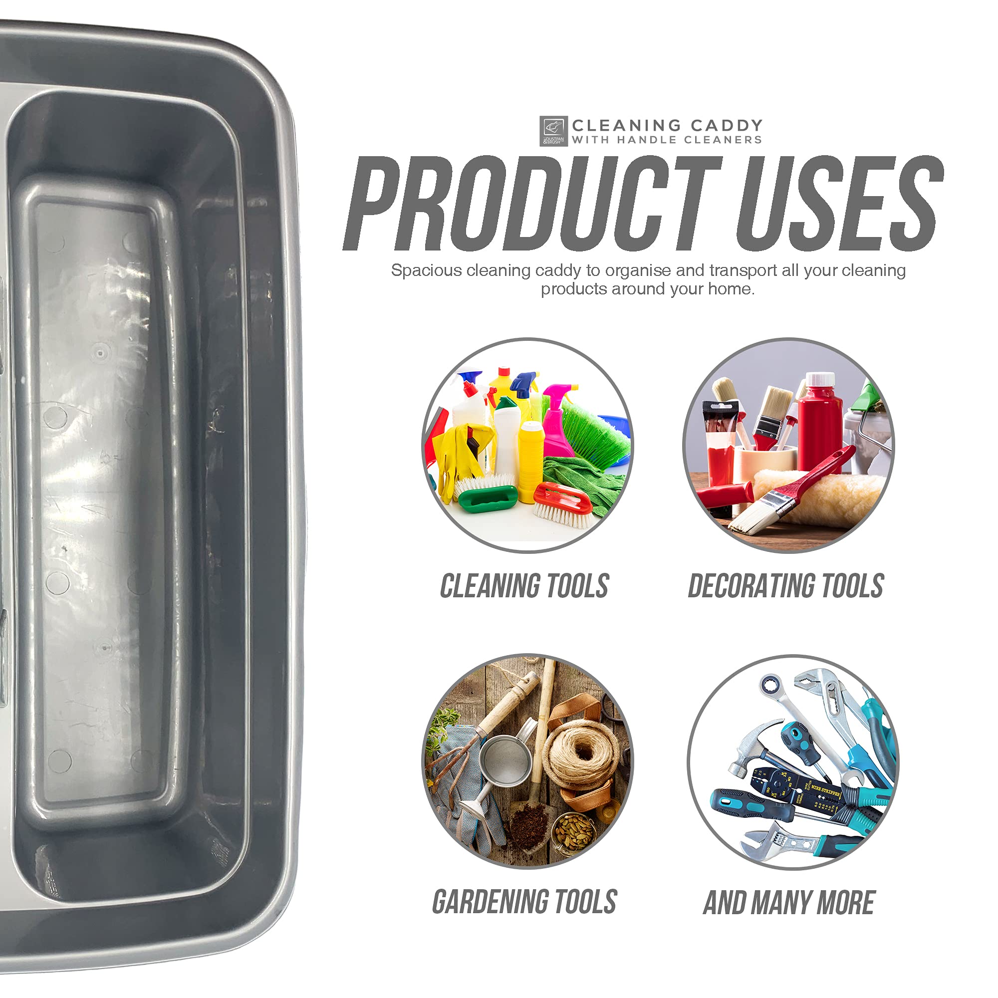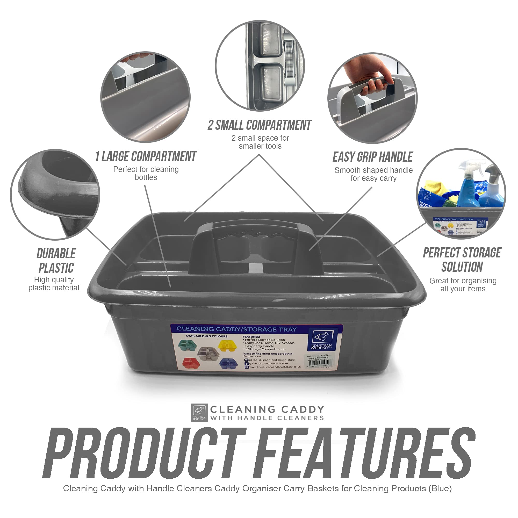 Die Aufbewahrungsbehälter sind die perfekte Reinigungsbox für die Hausarbeit, um Ihnen zu helfen, den Überblick über Ihren Haushalt zu behalten. Der grosse Behälter mit Griff ermöglicht es Ihnen, Ihre Lieblings-Reinigungsprodukte und -Werkzeuge in der praktischen Tragetasche zu Hause zu transportieren. Perfekte Grösse für die Aufbewahrung und als Unterspülen-Organizer. Der Putzkorb mit Fächern ist in 5 Farben erhältlich und perfekt für den Einsatz in und rund um Ihr Zuhause.