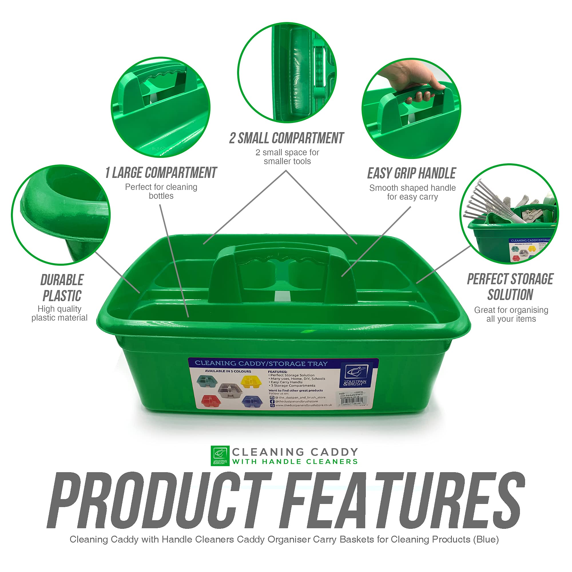 Die Aufbewahrungsbehälter sind die perfekte Reinigungsbox für die Hausarbeit, um Ihnen zu helfen, den Überblick über Ihren Haushalt zu behalten. Der grosse Behälter mit Griff ermöglicht es Ihnen, Ihre Lieblings-Reinigungsprodukte und -Werkzeuge in der praktischen Tragetasche zu Hause zu transportieren. Perfekte Grösse für die Aufbewahrung und als Unterspülen-Organizer. Der Putzkorb mit Fächern ist in 5 Farben erhältlich und perfekt für den Einsatz in und rund um Ihr Zuhause.