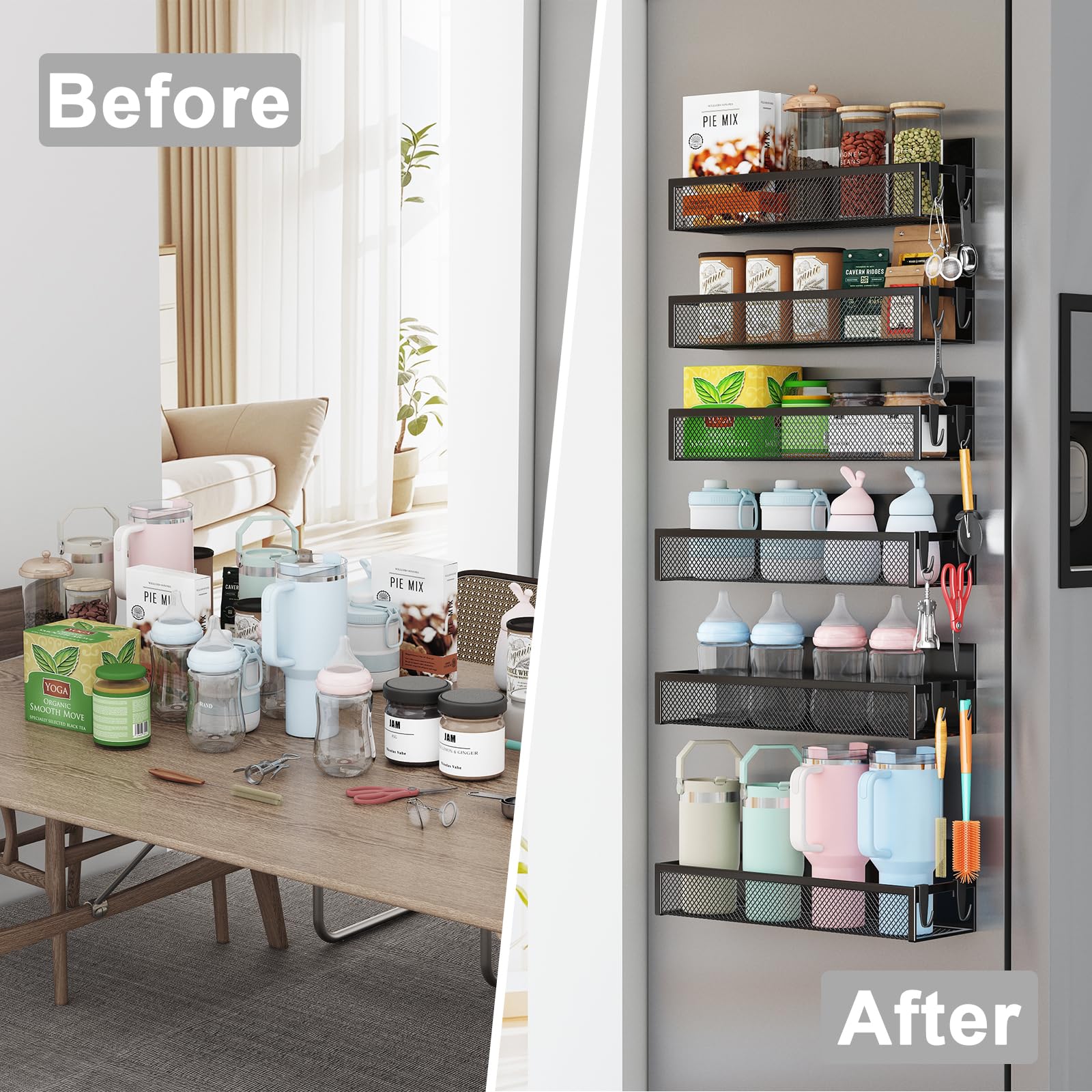 GROSSE KÜCHE ORGANISIEREN LÖSUNG!Aufworld Magnetisches Gewürzregal für Kühlschrank Schwarz 6 Packs und 12 extra bewegliche Haken.Platzsparend an der Seite des Kühlschranks für unsere kleine Küche mit begrenztem Platz.Magnetisches Küchenregal - Das magnetische Gewürzregal für den Kühlschrank wurde entwickelt, um die Raumnutzung zu maximieren und Ihre Sachen in Ordnung zu halten. Dank seiner magnetischen Eigenschaften haftet es sicher an magnetischen Oberflächen und gewährleistet Stabilität und einfachen Zugriff auf Ihre Gegenstände.Magnetisches Regal für den Kühlschrank - Nutzen Sie die Vielseitigkeit dieses magnetischen Regals und entdecken Sie seine endlosen Möglichkeiten. Von der Organisation Ihrer Gewürze in der Küche bis hin zum Aufräumen Ihrer Schreibwaren oder der Aufbewahrung von Toilettenartikeln - diese multifunktionale Aufbewahrungslösung bietet Komfort und Effizienz in jeder Umgebung.Magnetisches Gewürzregal - Erleben Sie den Komfort und die Ordnung, die das magnetische Gewürzregal für den Kühlschrank bietet, und verändern Sie die Art und Weise, wie Sie Ihre wichtigsten Dinge aufbewahren und darauf zugreifen.Magnetische Kühlschrankablage - Unser Magnet-Organizer ist nicht nur ein gewöhnlicher Gewürz-Organizer. Diese innovative Aufbewahrungslösung bietet eine Vielzahl von Möglichkeiten, die über die Aufbewahrung von Gewürzdosen hinausgehen. Mit seiner magnetischen Oberfläche haftet er mühelos an verschiedenen magnetischen Oberflächen und eröffnet so eine Welt der Ordnungsmöglichkeiten.Magnetischer Kühlschrank-Organizer - Er kann nicht nur Ihre Gewürzsammlung ordentlich aufbewahren und präsentieren, sondern auch als praktischer Schreibwarenhalter dienen, wenn er an einem Whiteboard befestigt wird. Auf der magnetischen Ablage können Sie Ihre Bleistifte, Kugelschreiber, Scheren und andere kleine Schreibwaren leicht zugänglich und geordnet aufbewahren - immer in Reichweite.Magnetische Ablage für den Kühlschrank - Aber das ist noch nicht alles! Dieses vielseitige Regal kann auch an der Seite Ihrer Waschmaschine angebracht werden und bietet eine praktische Aufbewahrungslösung für Ihre Toilettenartikel. Sie können es mühelos anbringen und haben Ihre Zahnbürste, Zahnpasta, Seife und andere wichtige Dinge in Reichweite, während Sie Ihre Wäsche waschen.